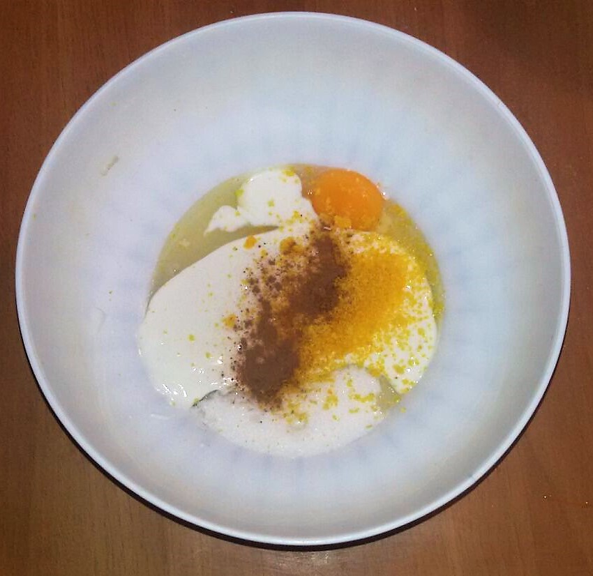 In una ciotola mettete lo zucchero, le uova, la cannella e la buccia d’arancia grattugiata.