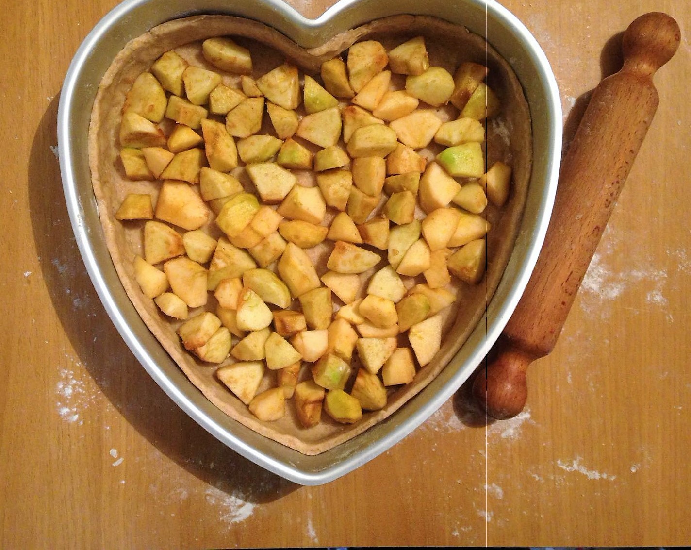 Riempite con i cubetti di mele e sbriciolatevi sopra la rimanente frolla. Cospargete con ancora un po di zucchero e infornate a 170° per circa 40 minuti.
