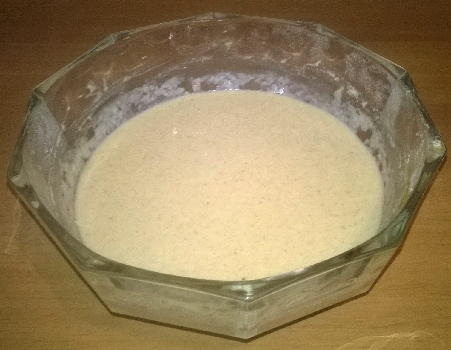 Mettete in una ciotola la farina di ceci e la farina di mais, versate a filo l’acqua tiepida e mescolate con una frusta per evitare che si formino grumi. Otterrete una pastella fluida, aggiungete il sale, coprite e lasciate macerare per almeno due ore.