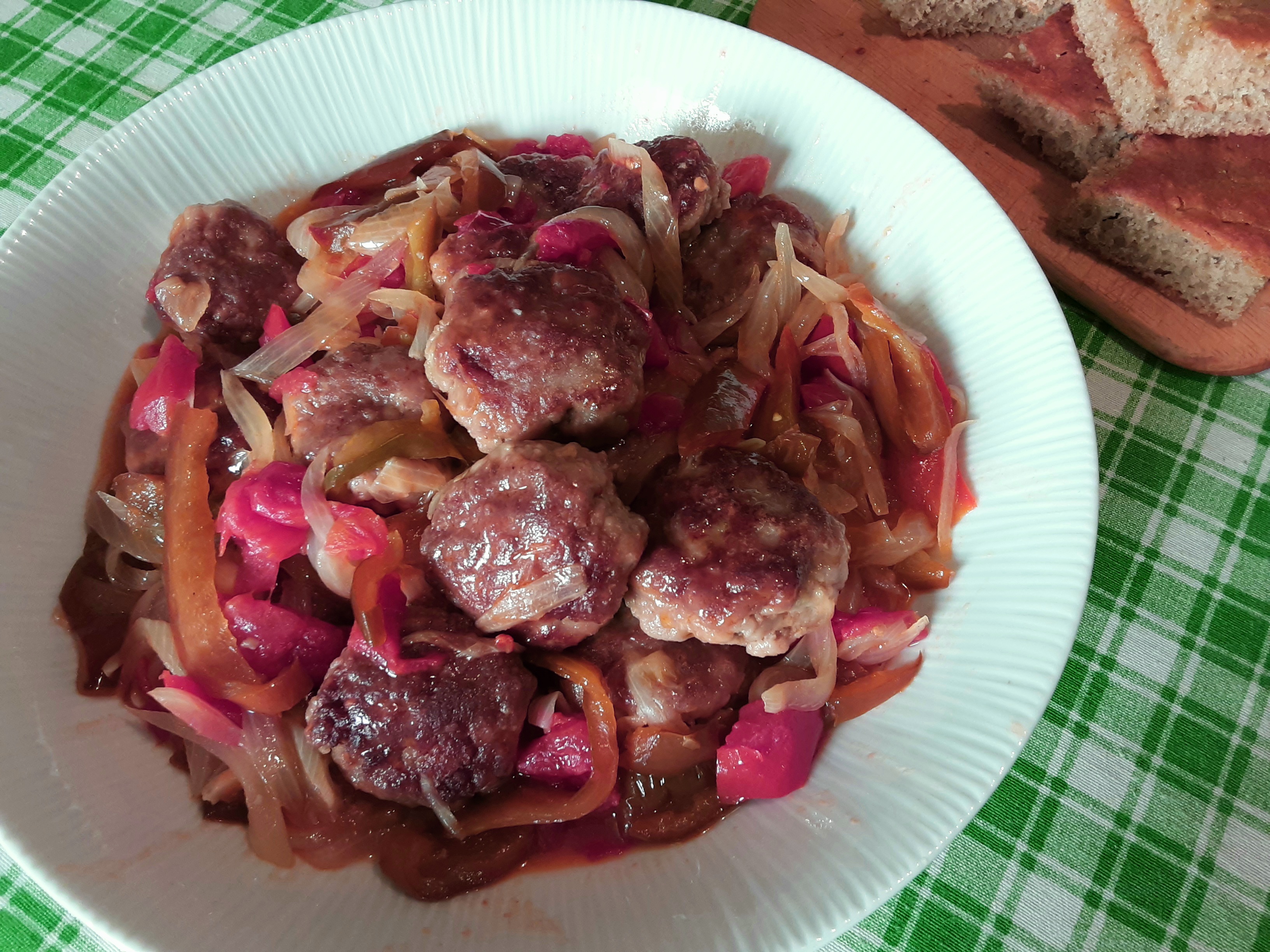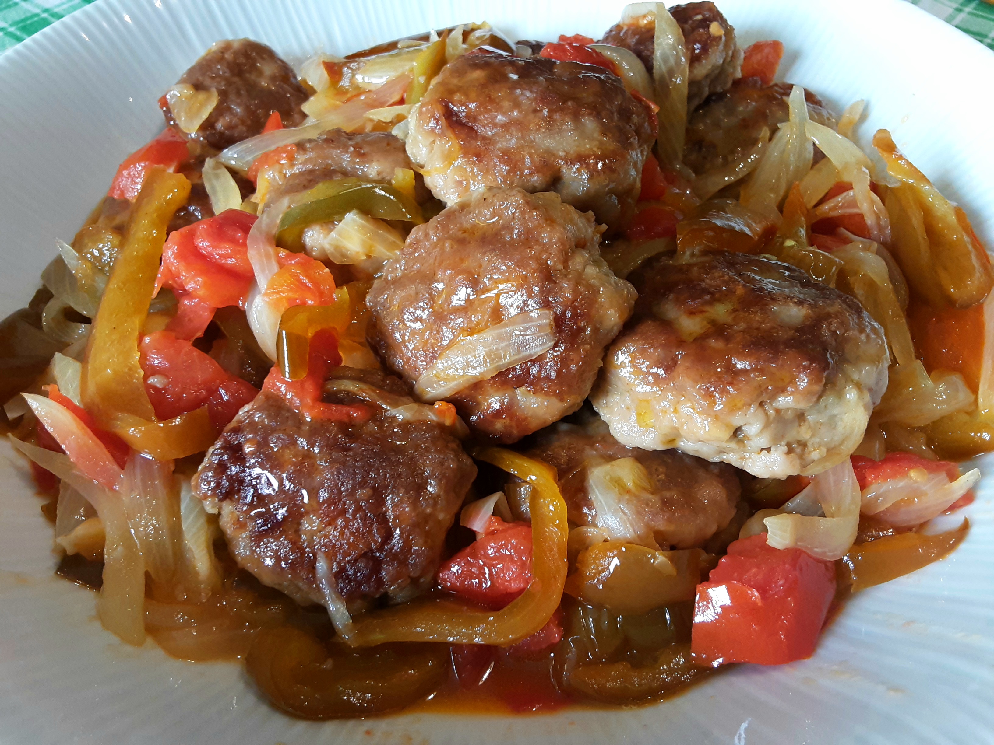 Ecco pronte le polpette con peperoni e cipolle, gustatele calde o tiepide e sentirete che bontà!!!