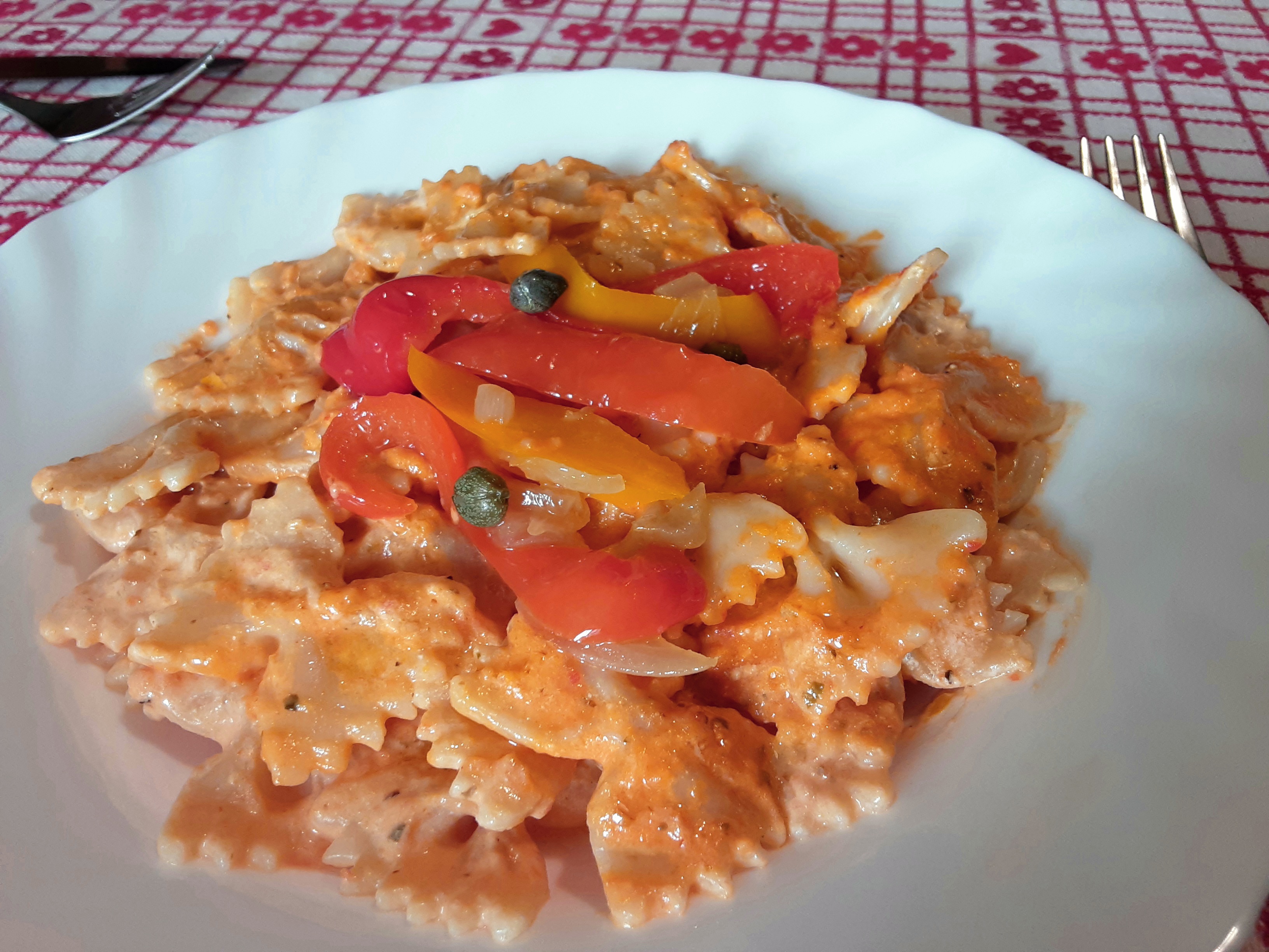 Farfalle con crema di peperoni e robiola (primo veloce)