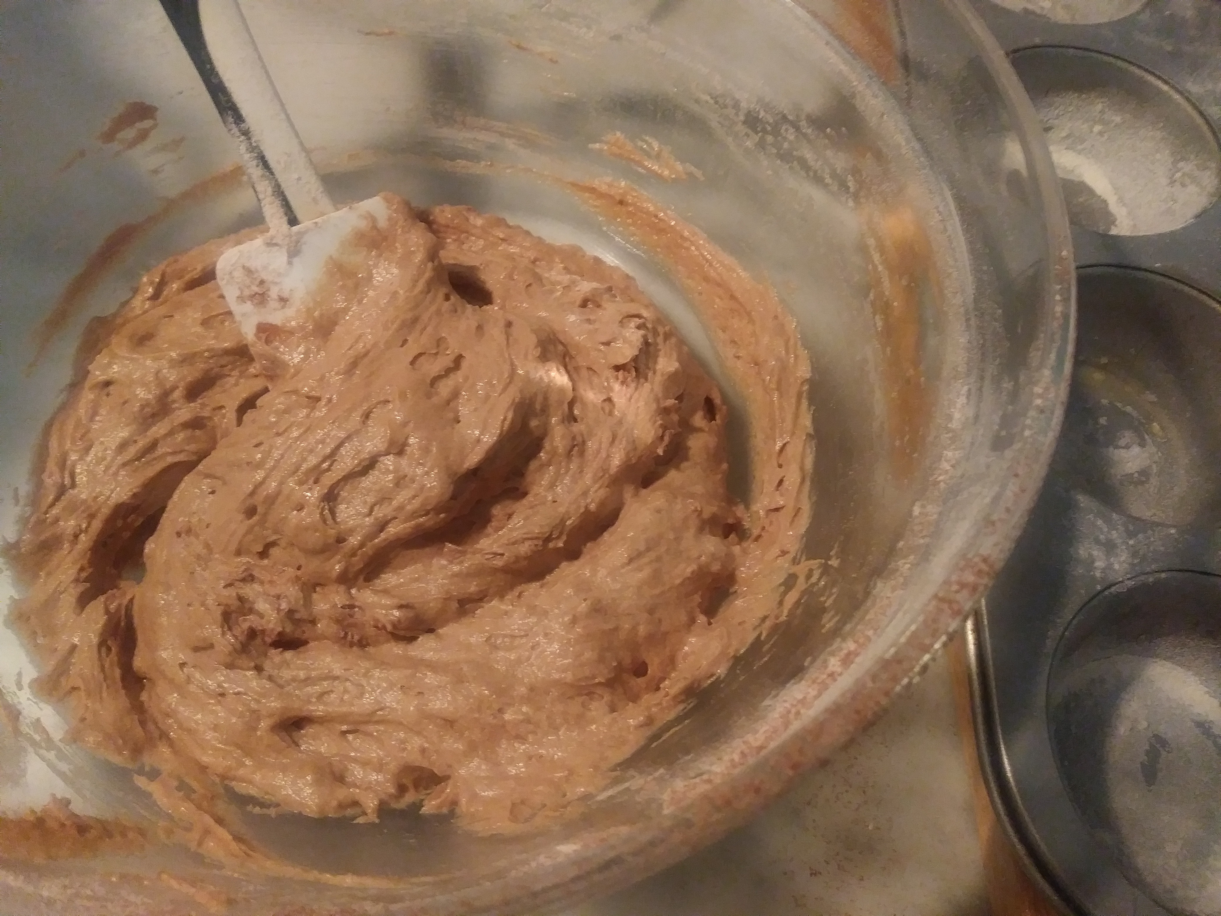 Per fare i muffins al cioccolato, sbattete con le fruste elettriche il burro morbido, lo zucchero e le uova per 5 minuti, poi unite poca alla volta la farina setacciata insieme al cacao e al lievito.