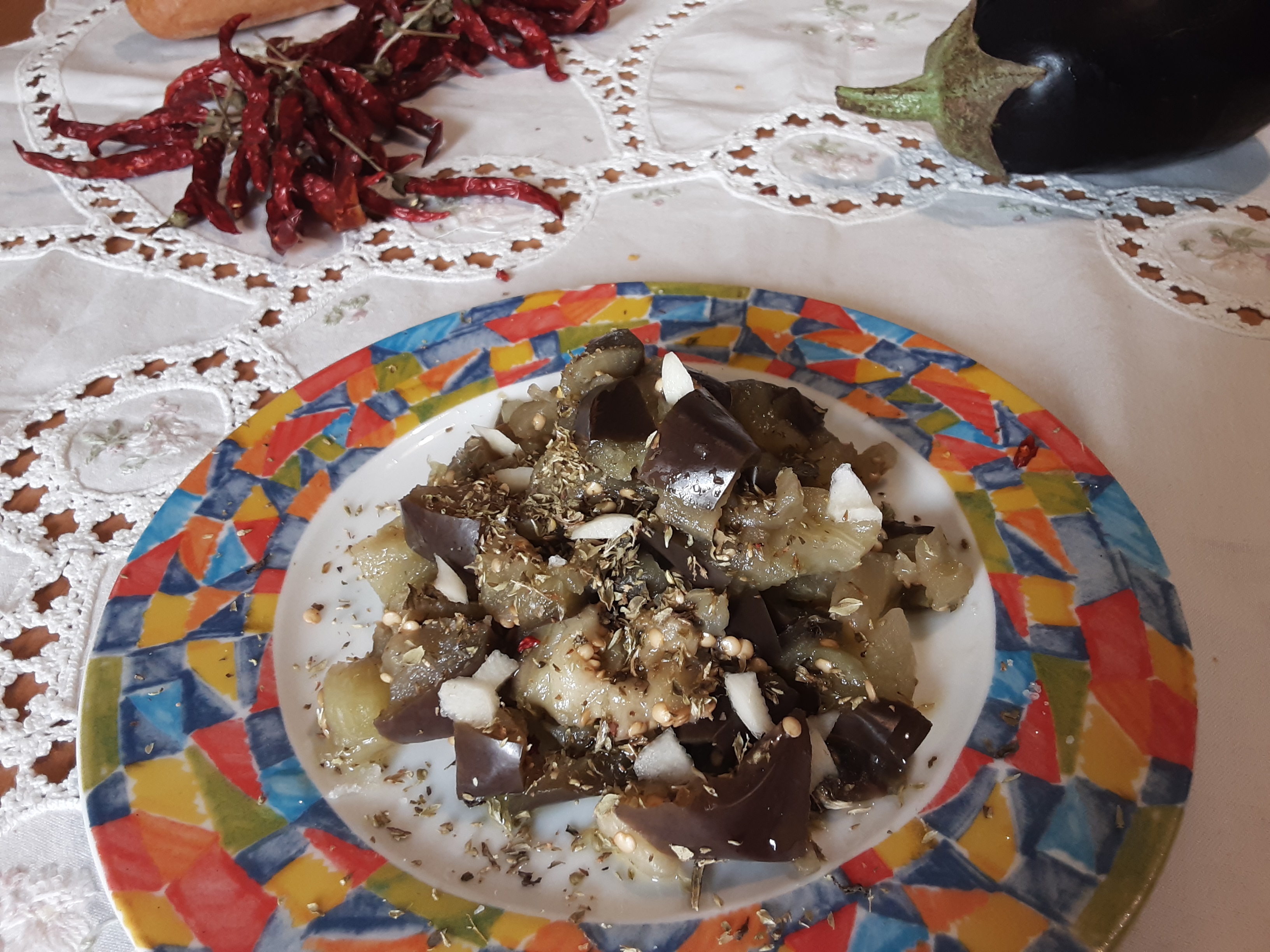 Ecco pronte le melanzane “cunzate ” lasciatele riposare almeno mezz’oretta prima di gustarle.