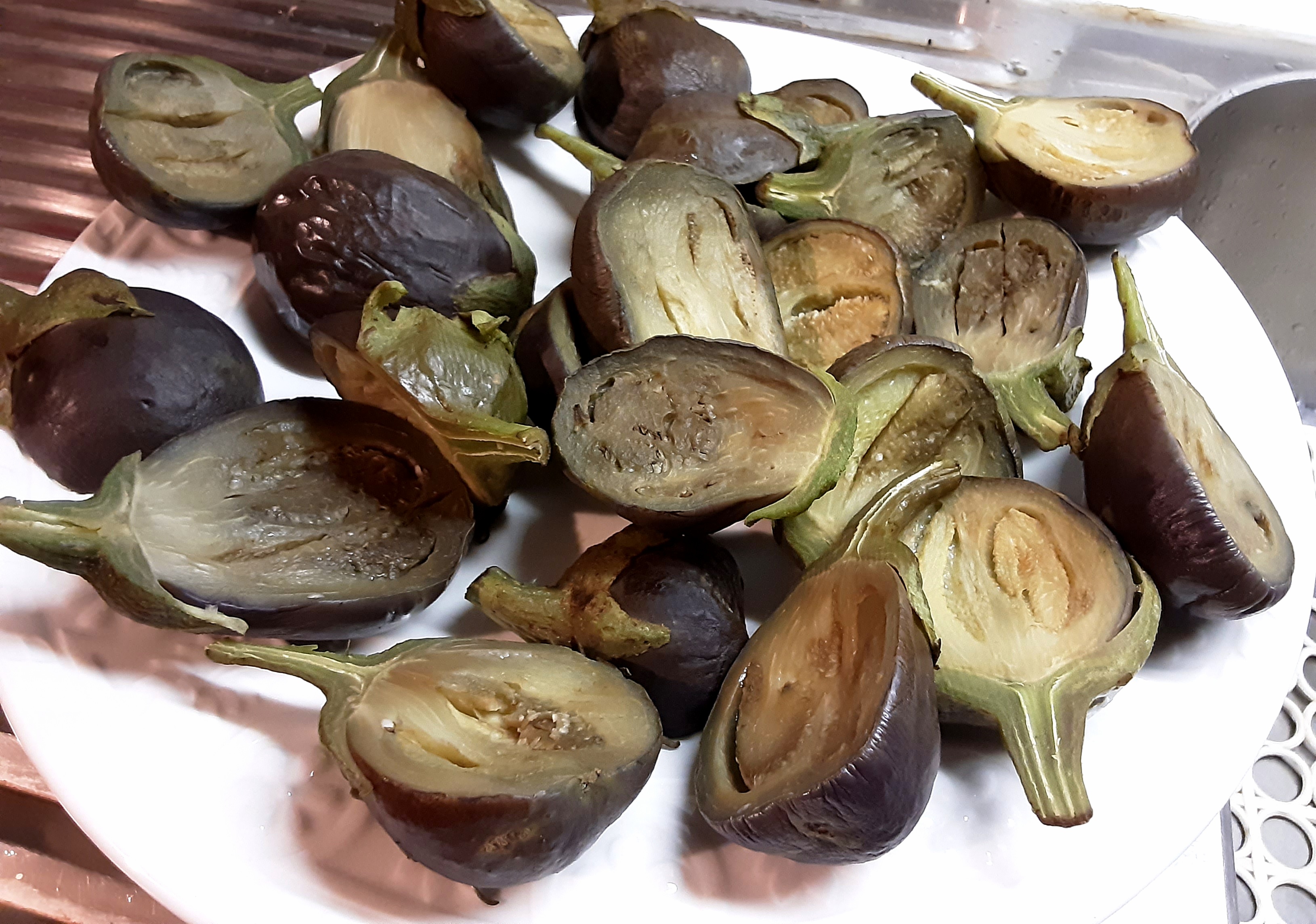 - 1 kg di melanzane piccole (è una qualità che si trova a Genova, potete utilizzare anche le altre qualità scegliendo le più piccole)