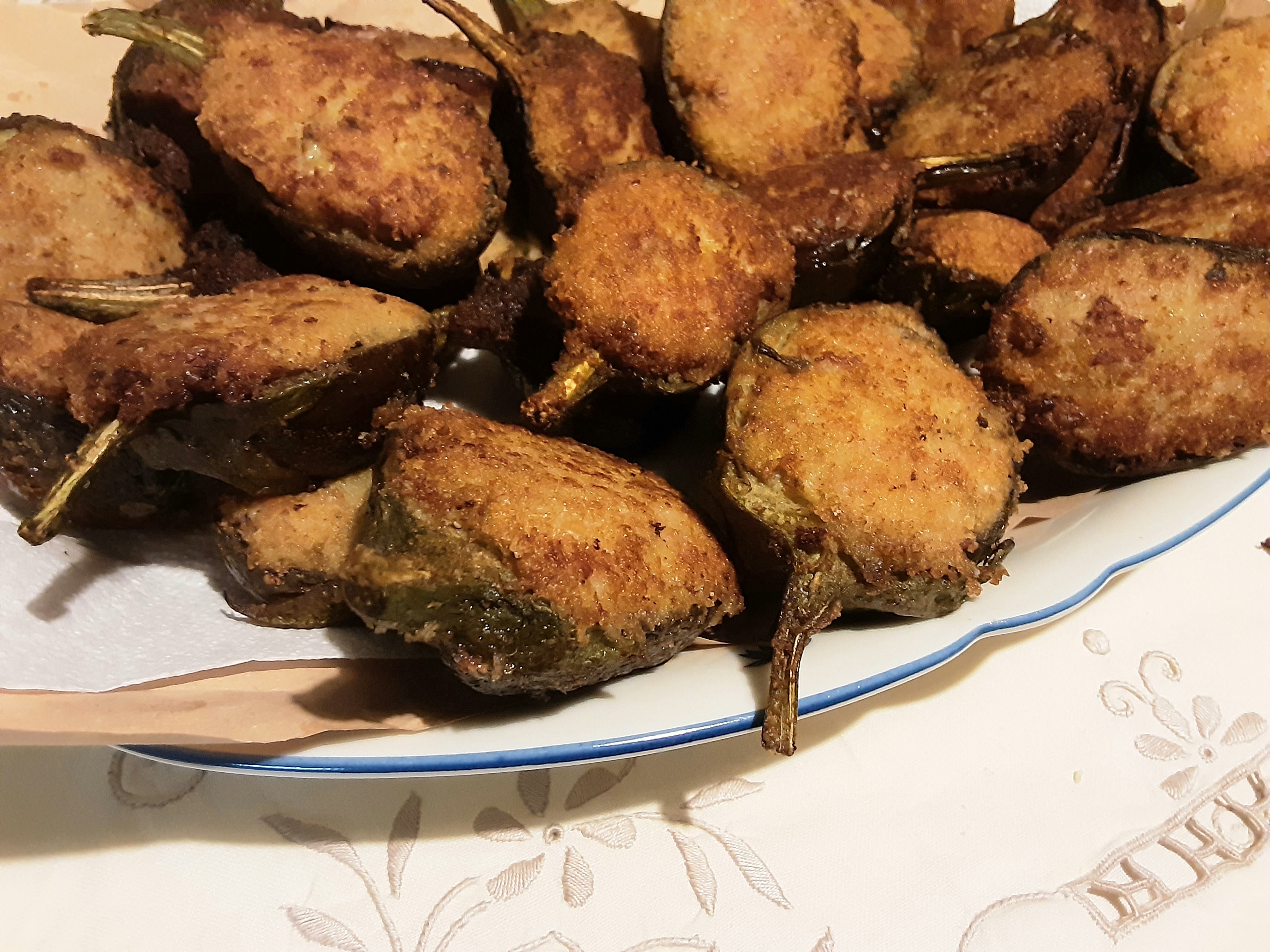 Le melanzanine ripiene alla genovese sono tipiche della cucina ligure, questa è la ricetta di nonna Clara, mia suocera, tramandata da nonna Erminia. Sono rigorosamente fritte e come tutto ciò che è fritto, sono troppo buone (a Genova si dice che fritte sono buone anche le suole delle scarpe). Vi assicuro che appena portate in tavola spariscono in un attimo!!! Sono buonissime come secondo, oppure come antipasto o finger food per un apericena. L’unico difetto: che sono sempre troppo poche…dice mio marito.