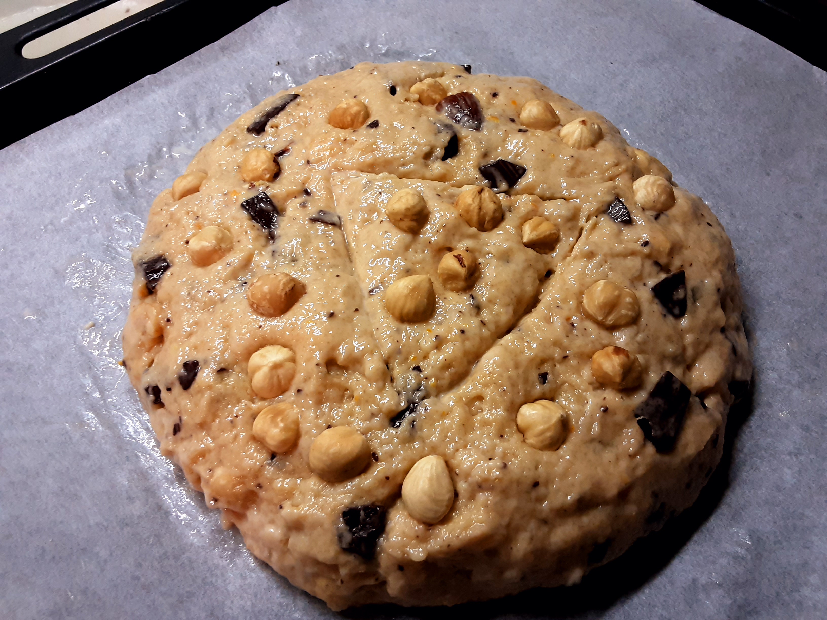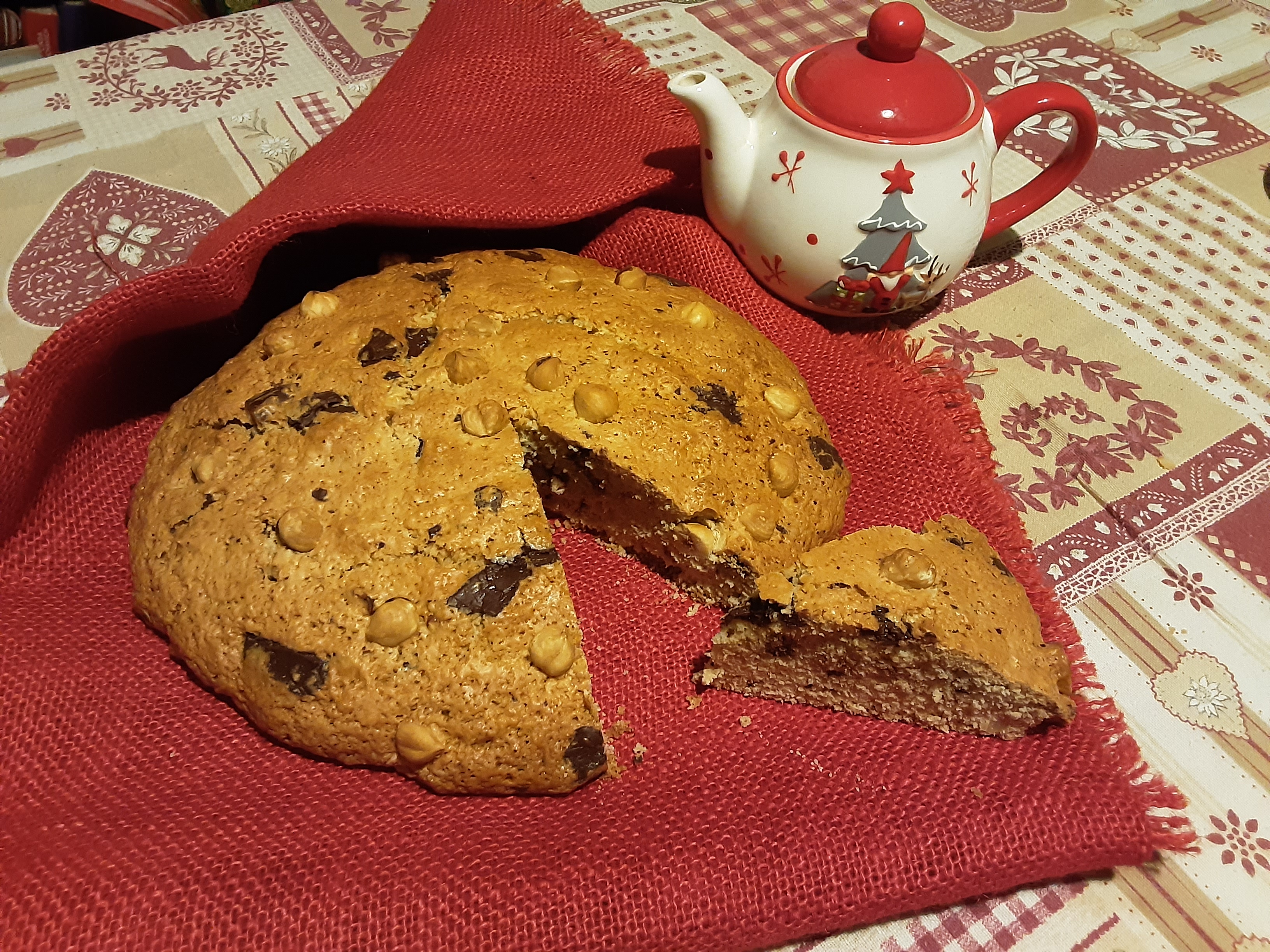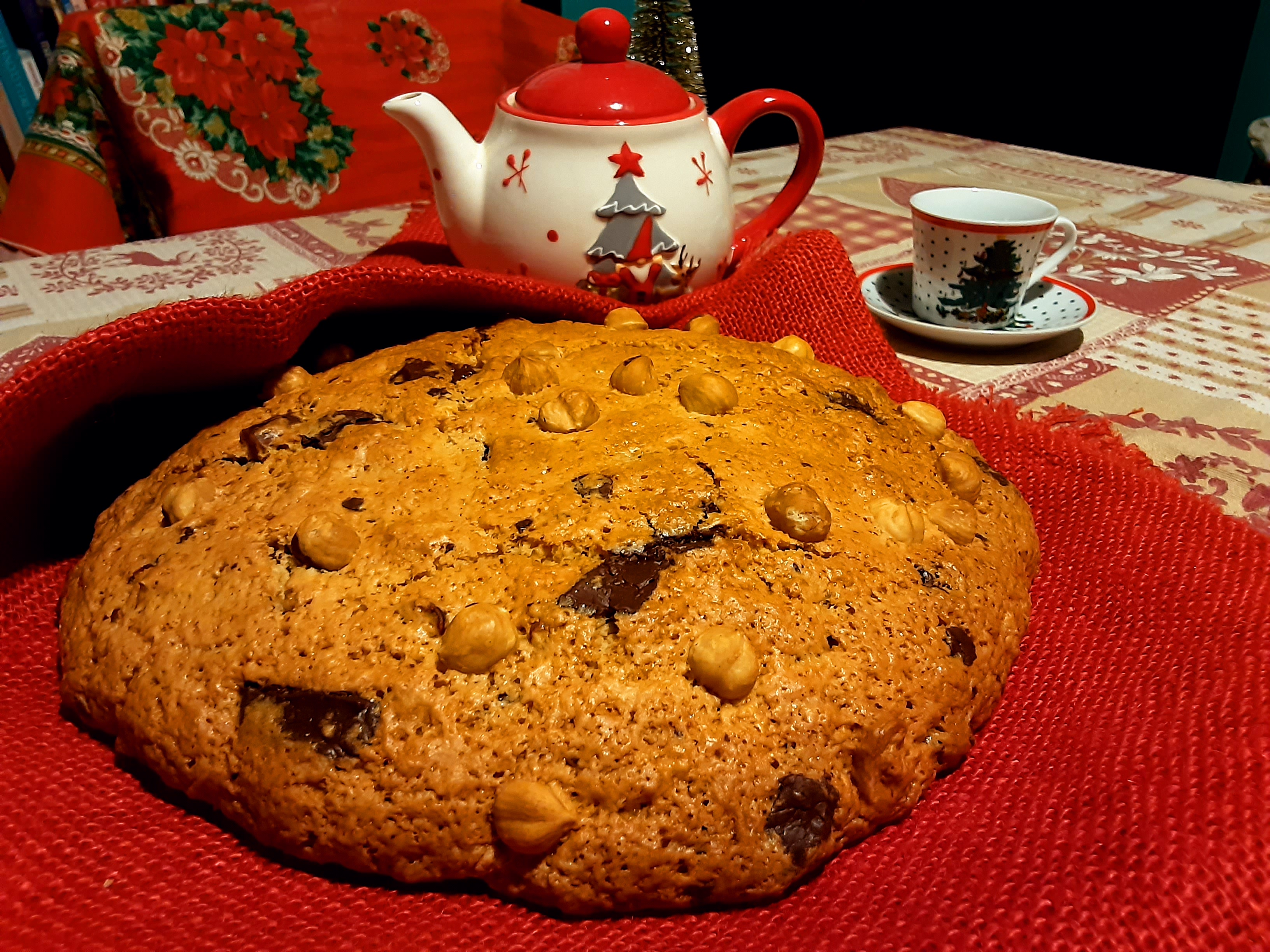 Ecco pronto il pandolce con cioccolato e nocciole.