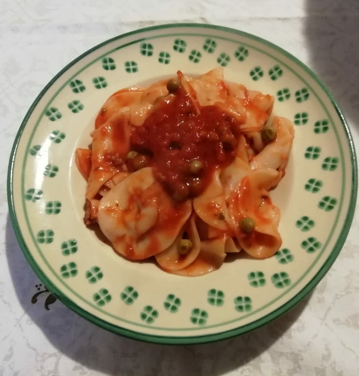 I “cappellacci” sono una qualità di pasta fresca che impastava nonna Clara, semplicemente con acqua e farina e li condiva rigorosamente con un ragù di carne e piselli. Mio marito si ricorda perfettamente quando sua mamma li preparava e si divertiva a vedere come riusciva a creare i “cappellacci”: dischetti di pasta, premuti nel centro. Una tradizione di famiglia, tramandata da nonna Erminia, che penso sia bello mantenere!!!!❤