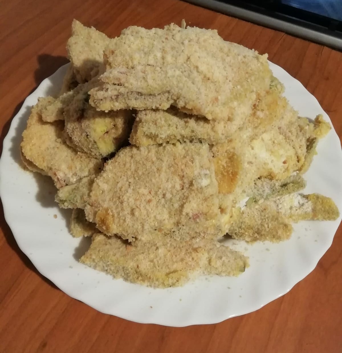 A vostro piacere potete impanare i carciofi senza l’aglio e il prezzemo, invece vi consiglio la panatura con pangrattato e farina di mais, otterrete una frittura asciutta, i carciofi non risulteranno per niente unti.