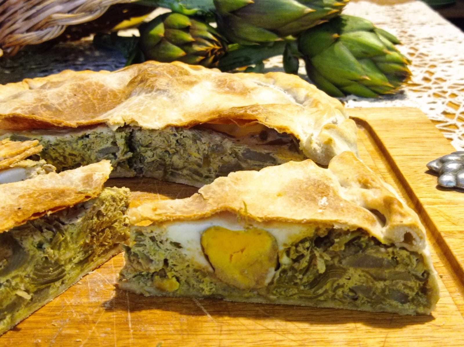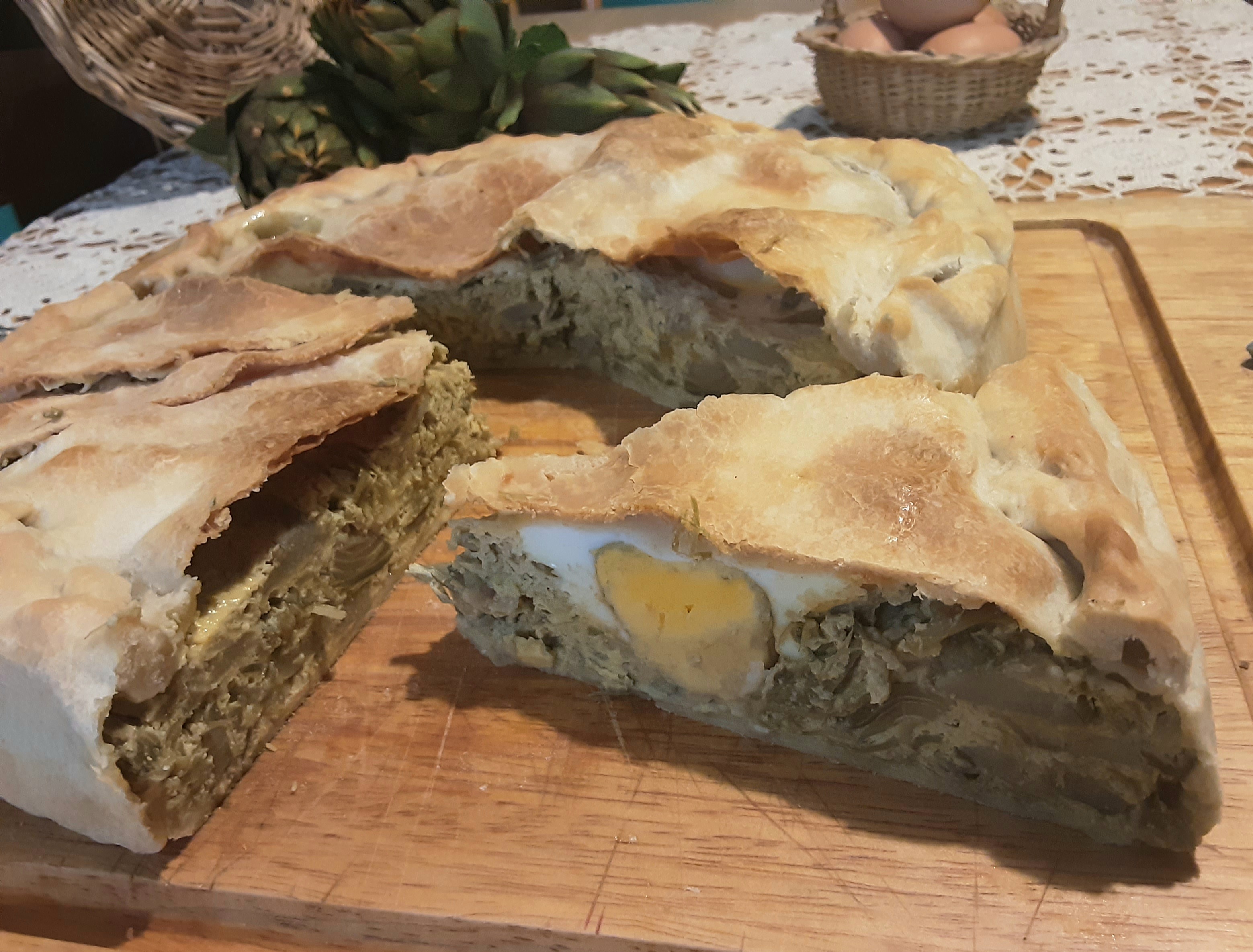 Mi pare una parente strettissima della torta Pasqualina, che, per Pasqua, appunto, mia madre faceva con ripieno di soli carciofi. È davvero deliziosa!