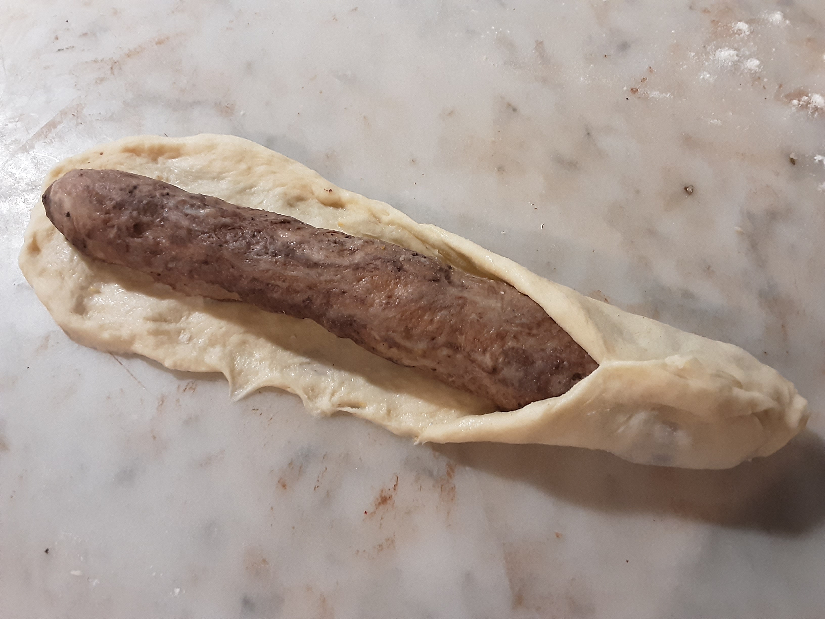Proseguite con il resto degli impasti, via via che formate i cilindretti, adagiateli uno accanto all’altro.