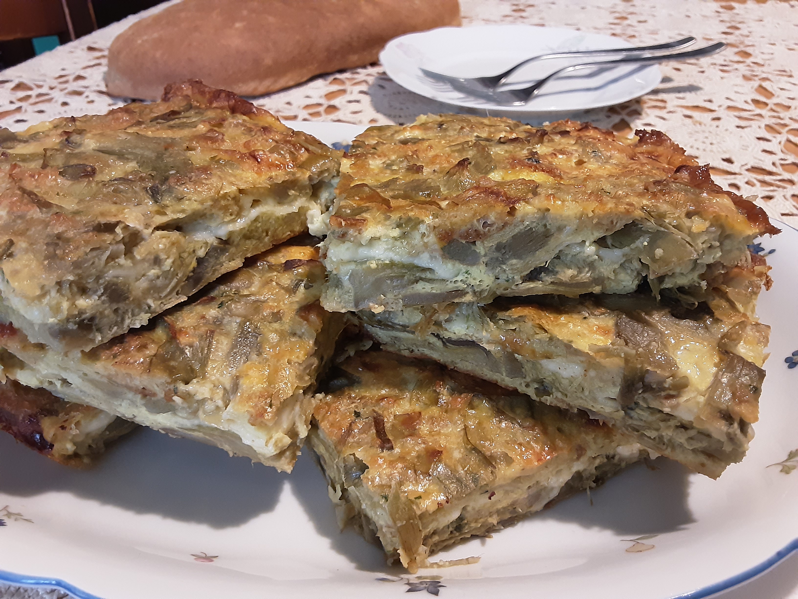 Infornate in forno preriscaldato ventilato per 30 minuti circa, la frittata di carciofi è pronta quando è dorata in superficie.