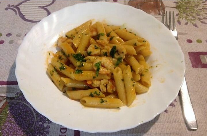 Pasta con gamberetti e pomodorini
