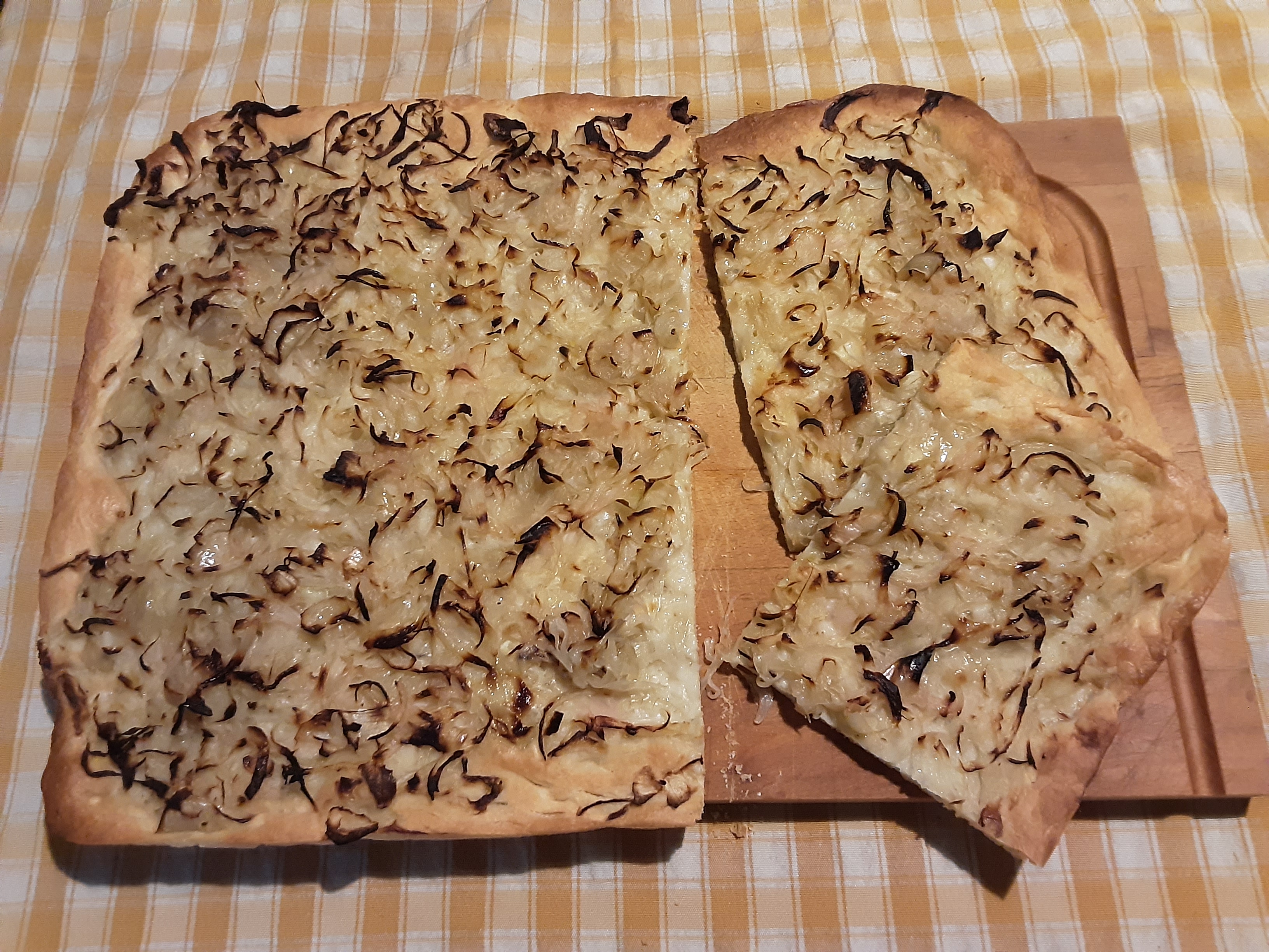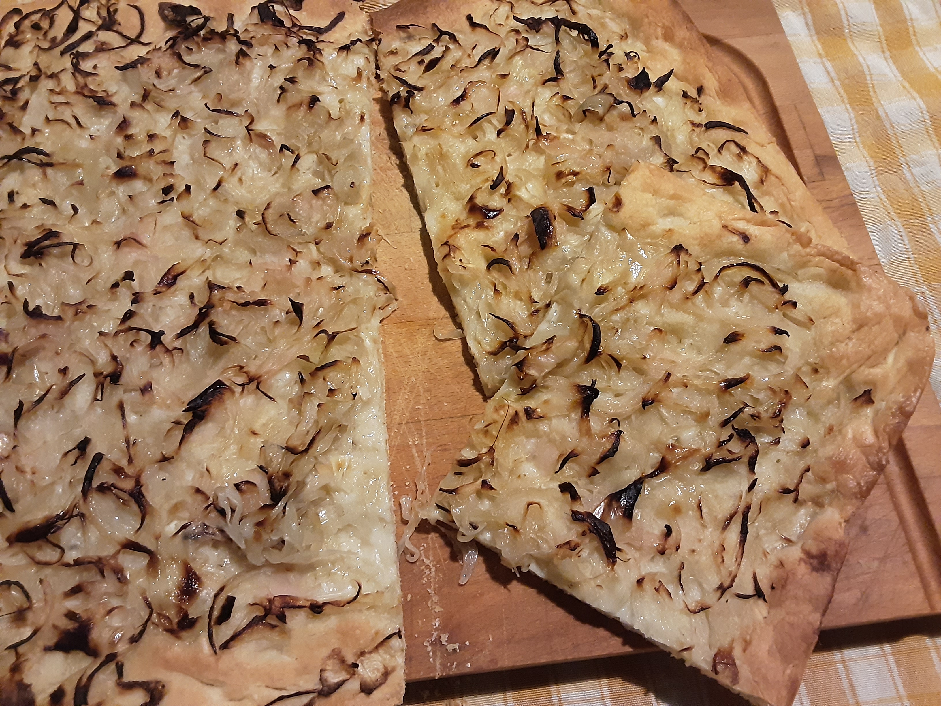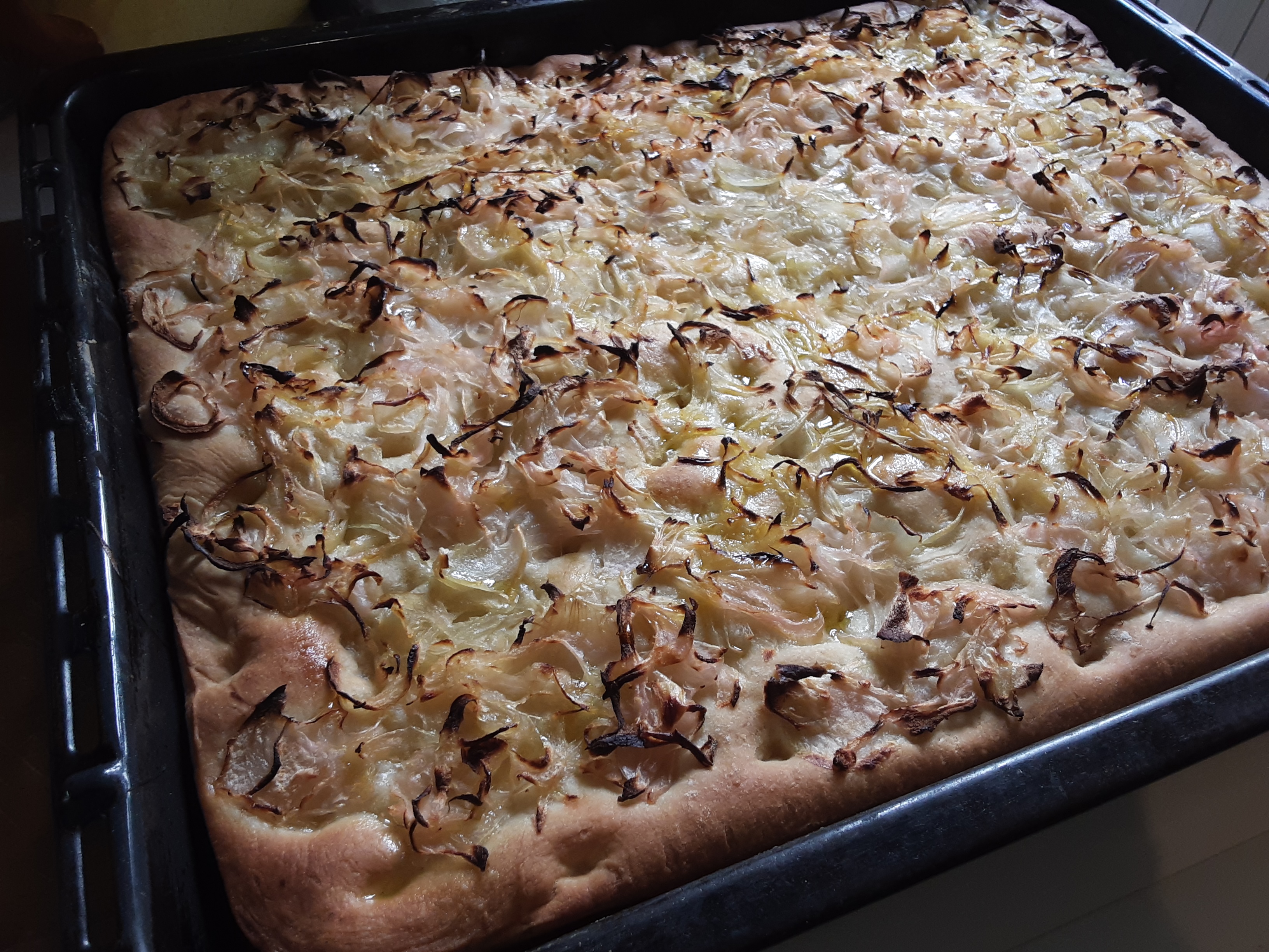 Sfornate la focaccia con le cipolle e irroratela con olio extravergine d’oliva, gustatela calda…è fantastica!