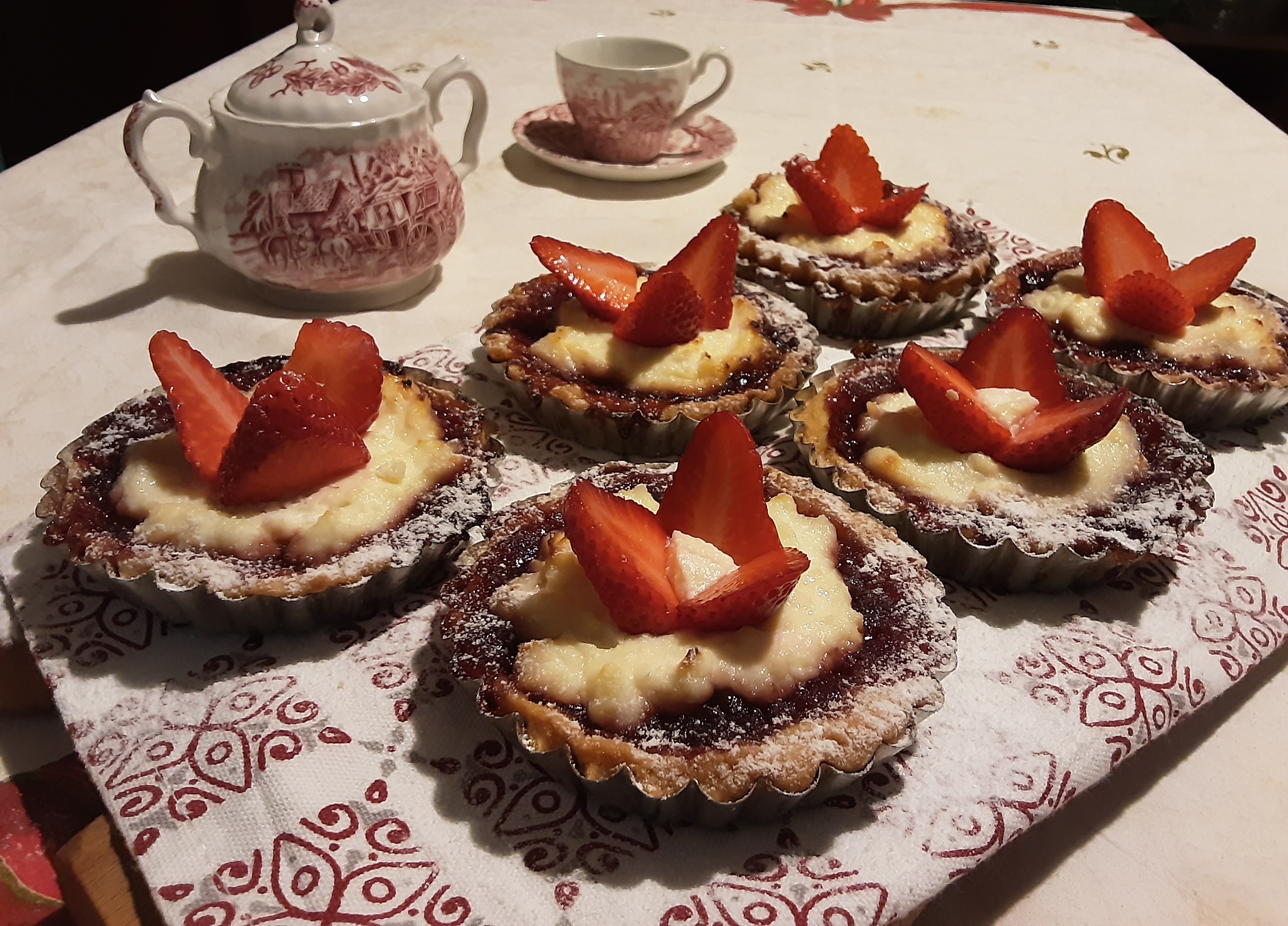 Sfornate, lasciate raffreddare. Lavate le fragole e decorate le crostatine.