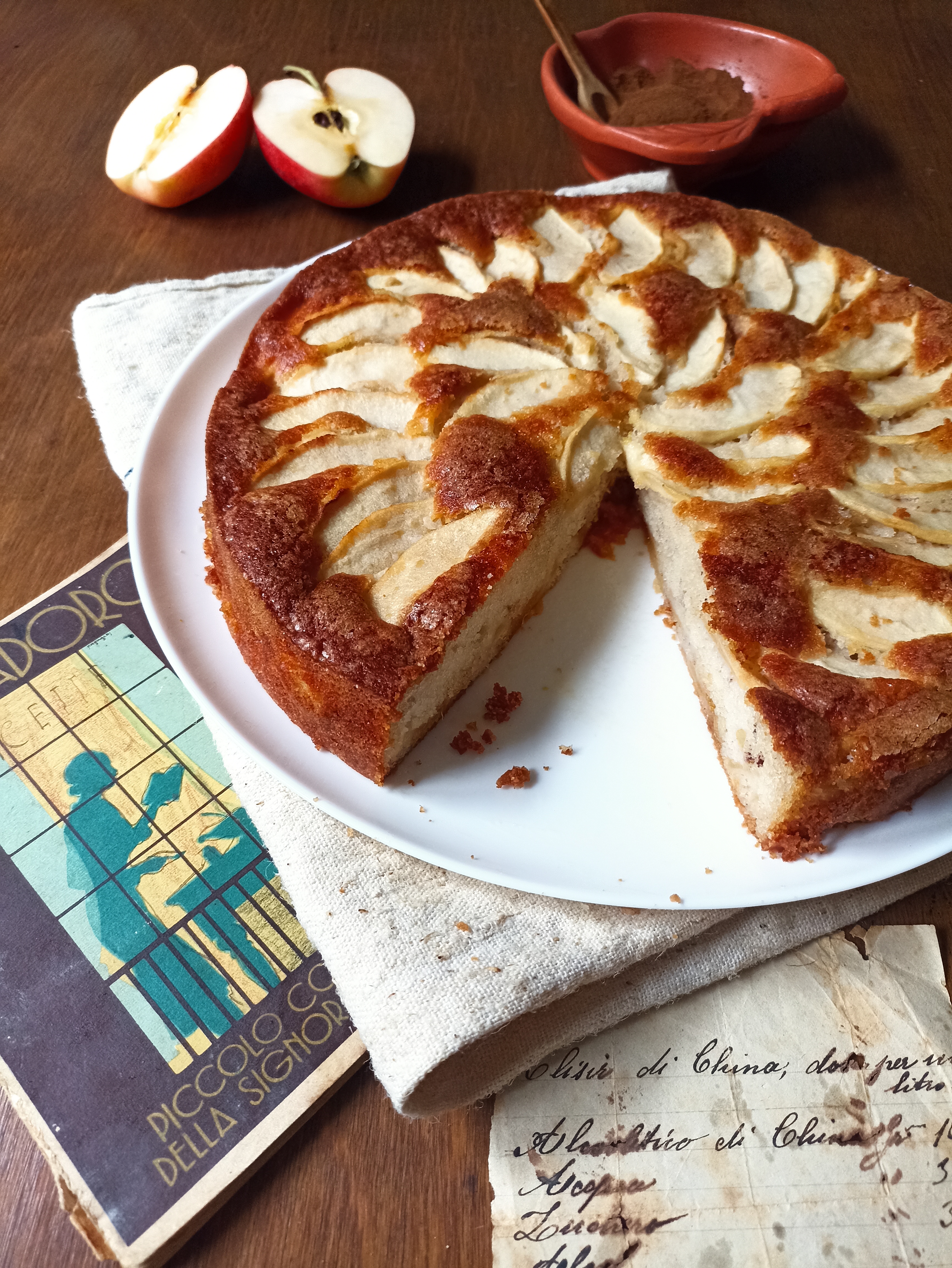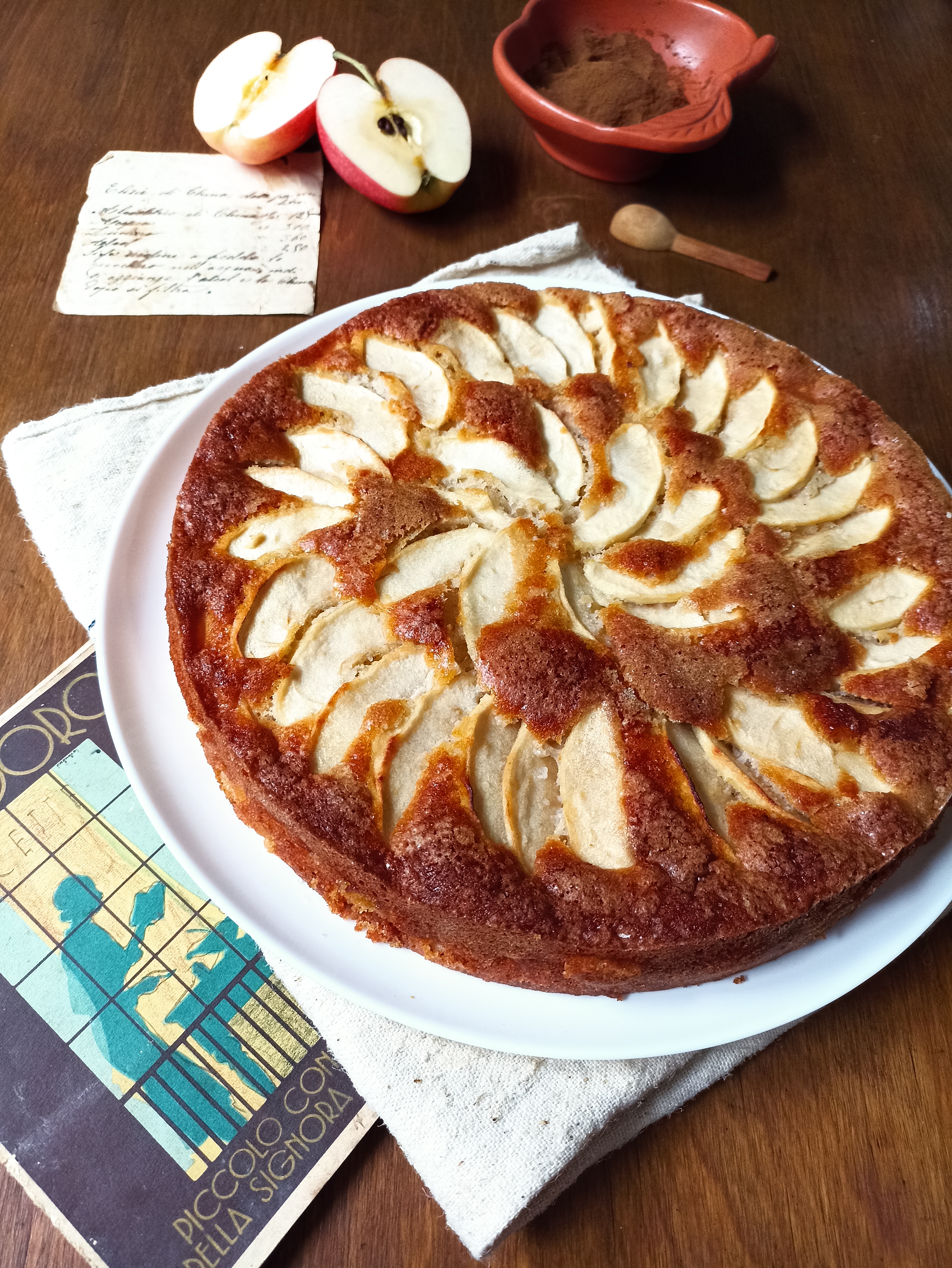 Sfornate, lasciate raffreddare e trasferite la torta di mele su un piatto da portata.