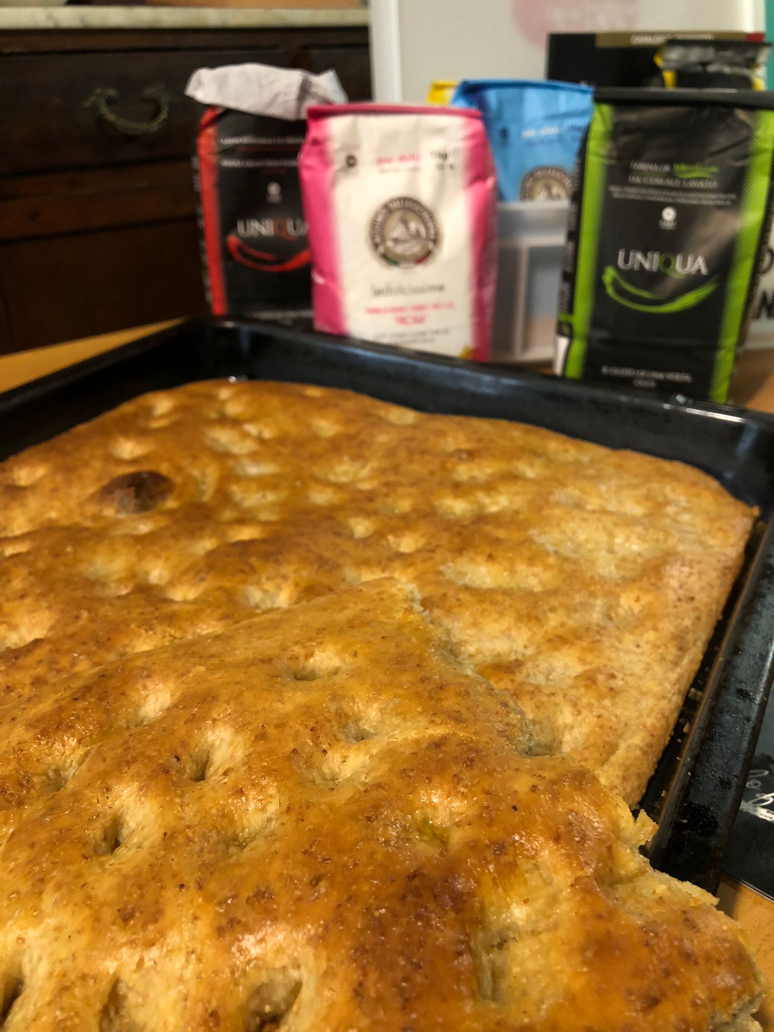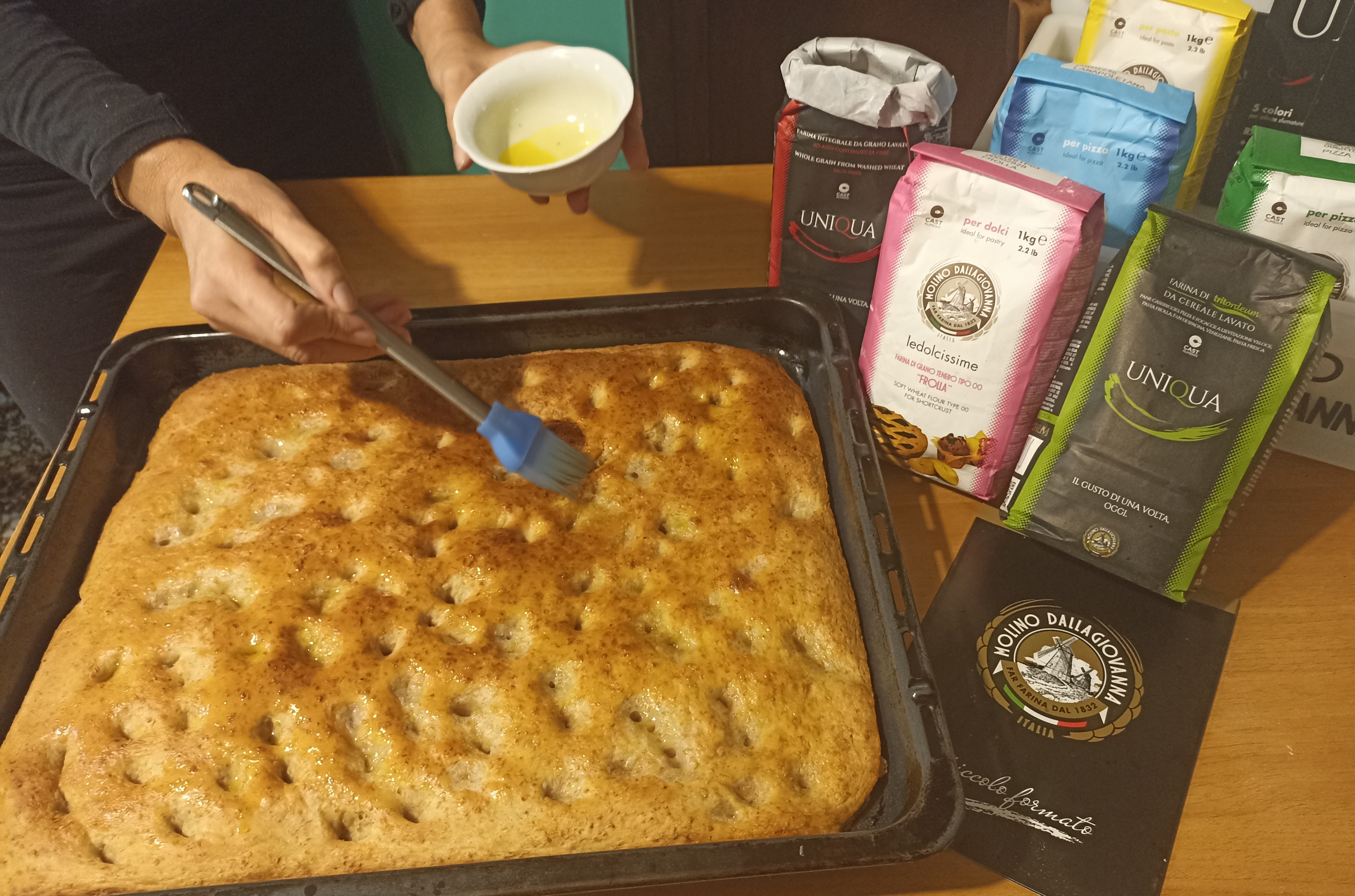 Impastare è la mia passione, pane, pizza, focacce…oggi ho preparato la focaccia integrale con una particolare farina da grano lavato del Molino Dallagiovanna che lavora per mantenere alta la tradizione italiana nel mondo. Seleziona e macina i migliori cereali per ottenere tante differenti miscele che nelle nostre mani diventeranno piccole opere d’arte!
