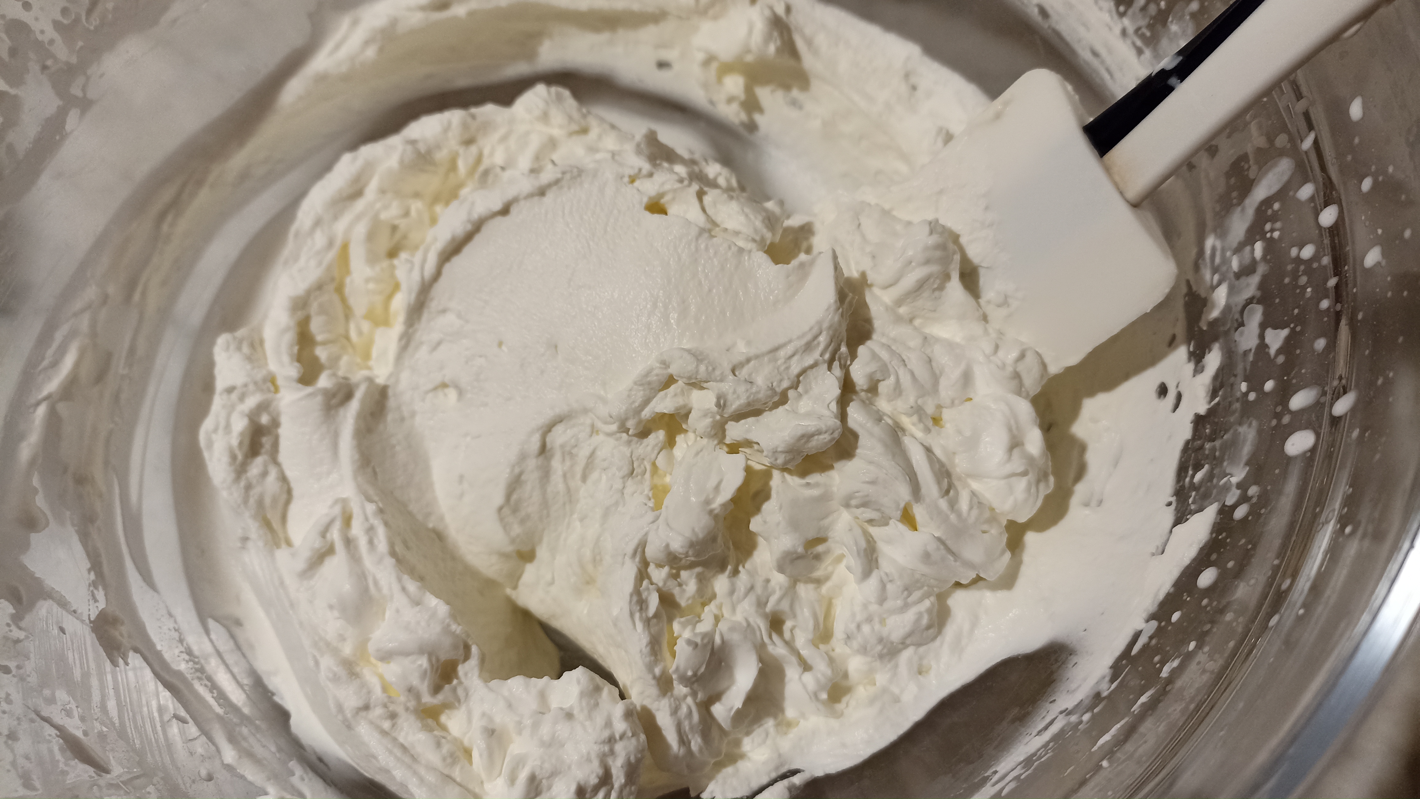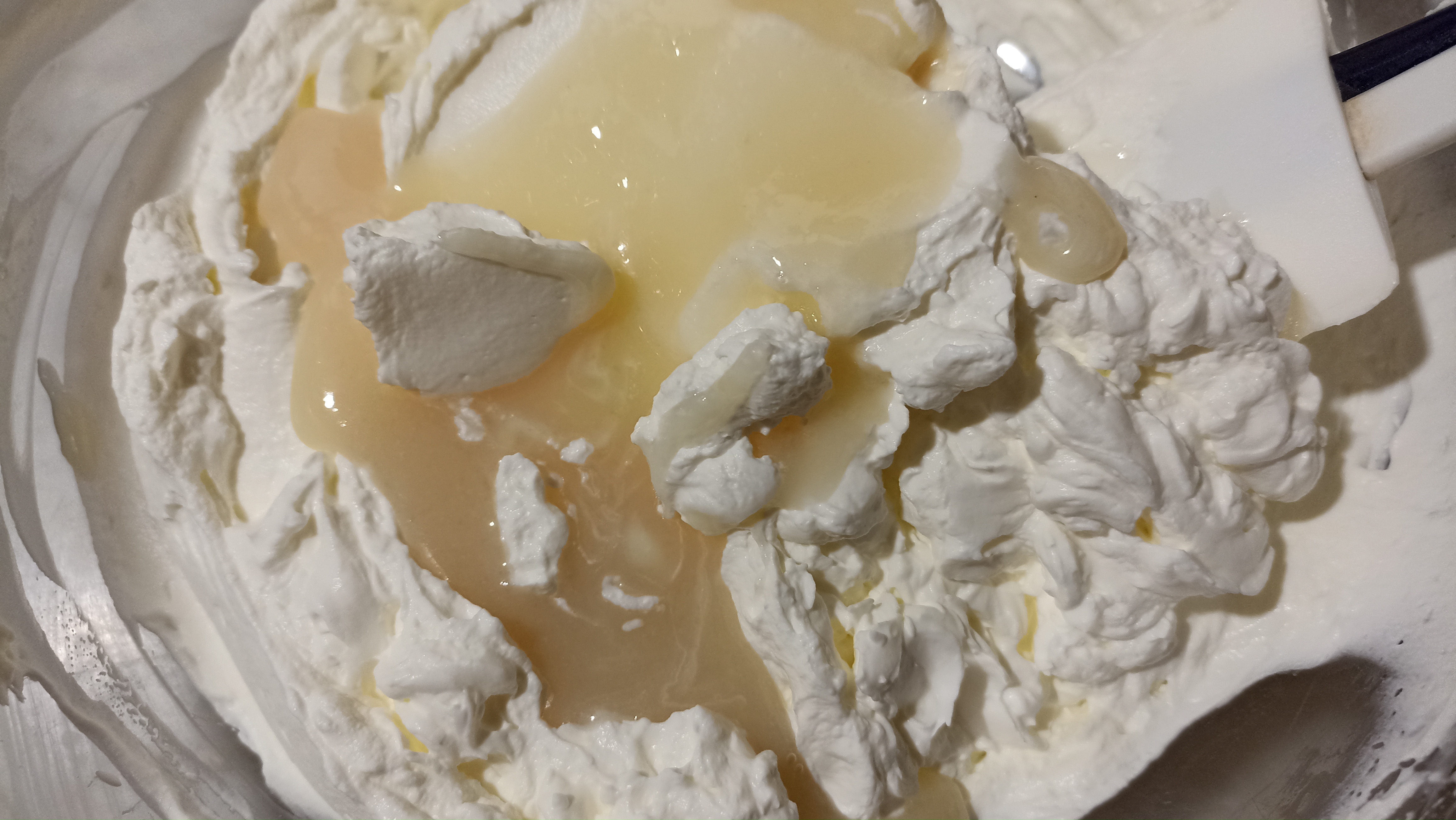 In una ciotola montate la panna, aggiungete il latte condensato e mescolate delicatamente. Mettetela in frigorifero.