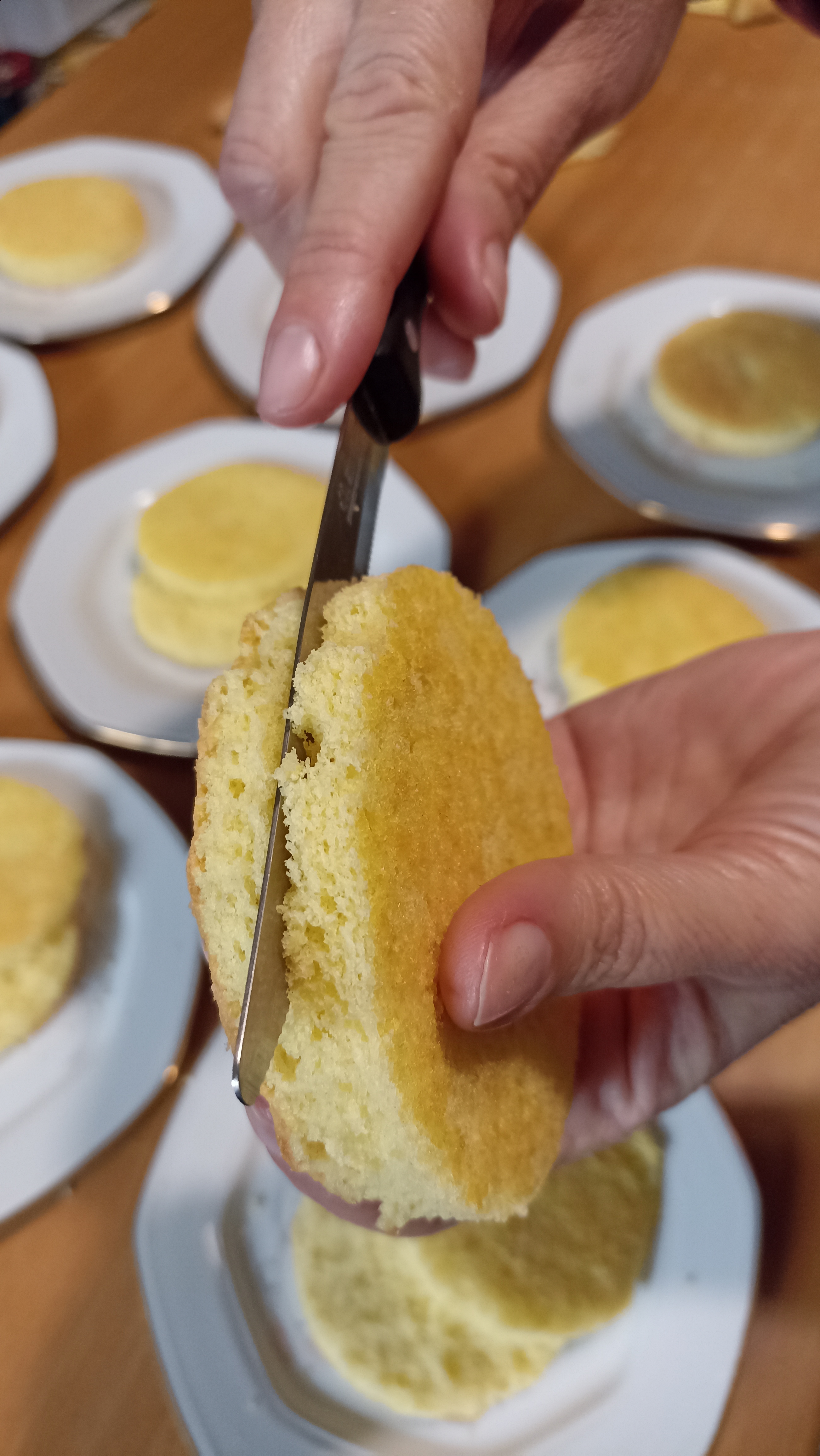 Tagliate a metà (orizzontalmente) ciascun dischetto