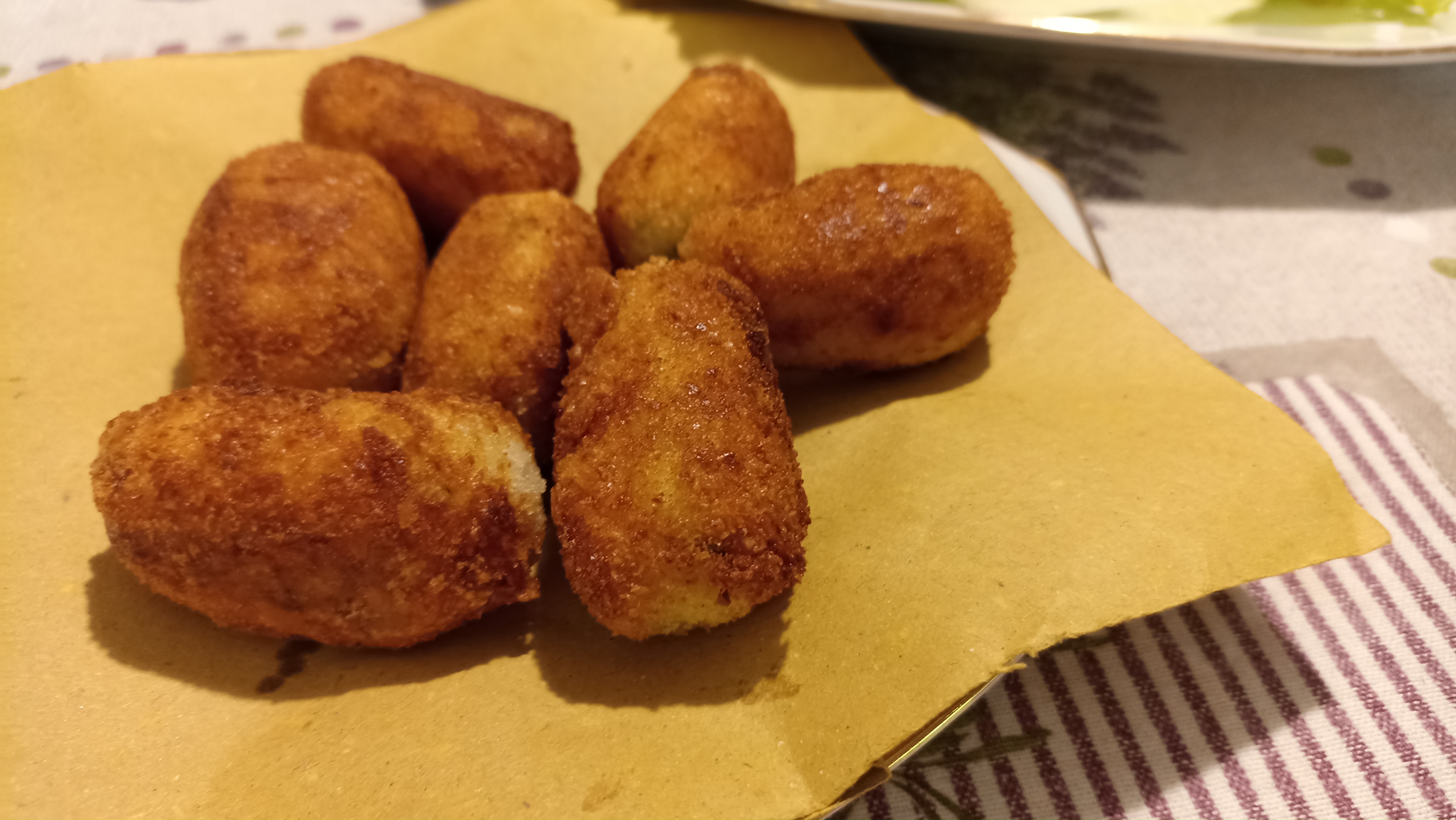 Friggete le crocchette in olio di arachidi caldo, rigirandole e facendole dorare da ogni parte.
