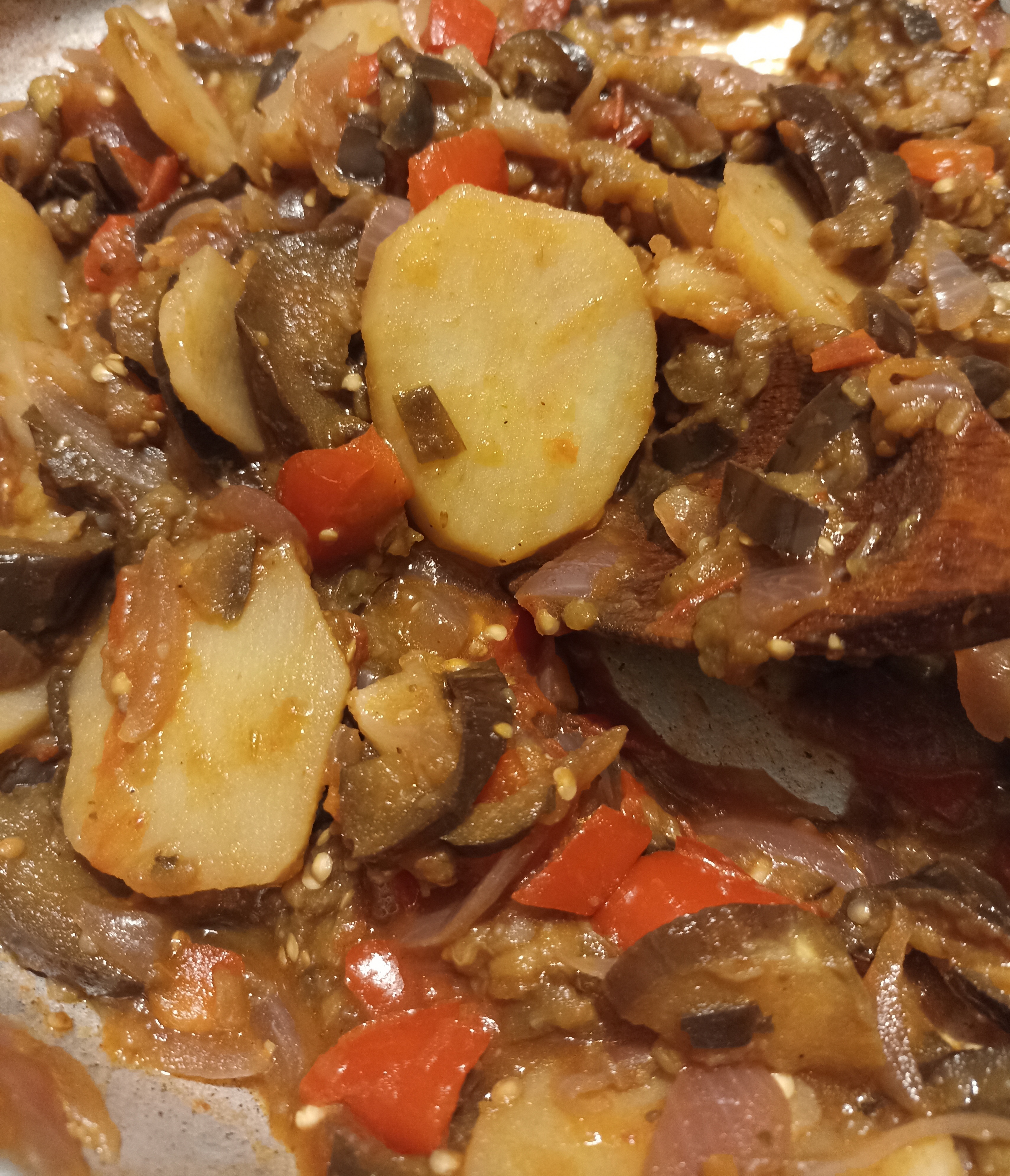 Aggiungete una tazzina d’acqua, coprite e fate cuocere per 30-35 minuti circa, mescolate di tanto in tanto. A fine cottura aggiungete un filo d’olio a crudo.