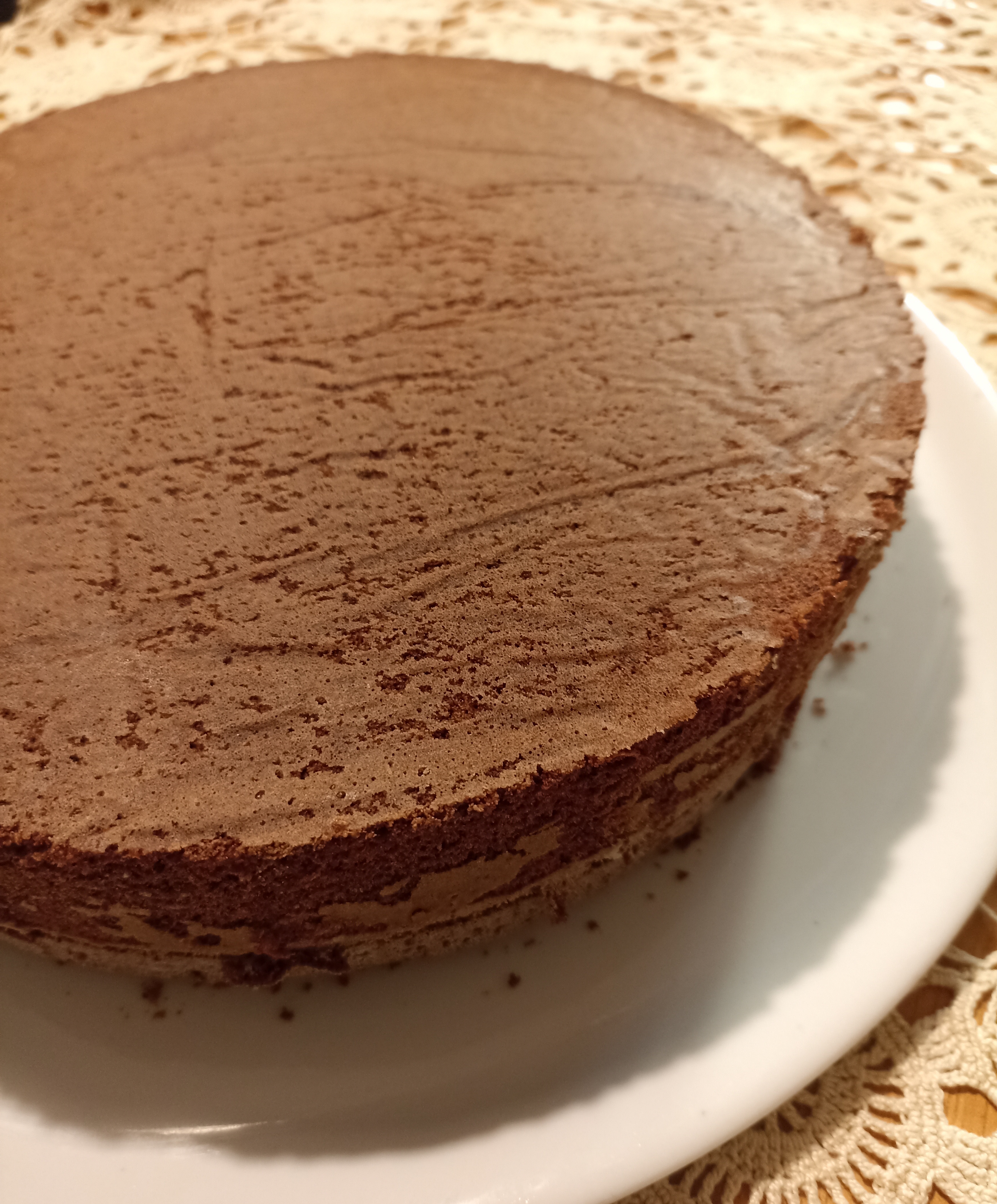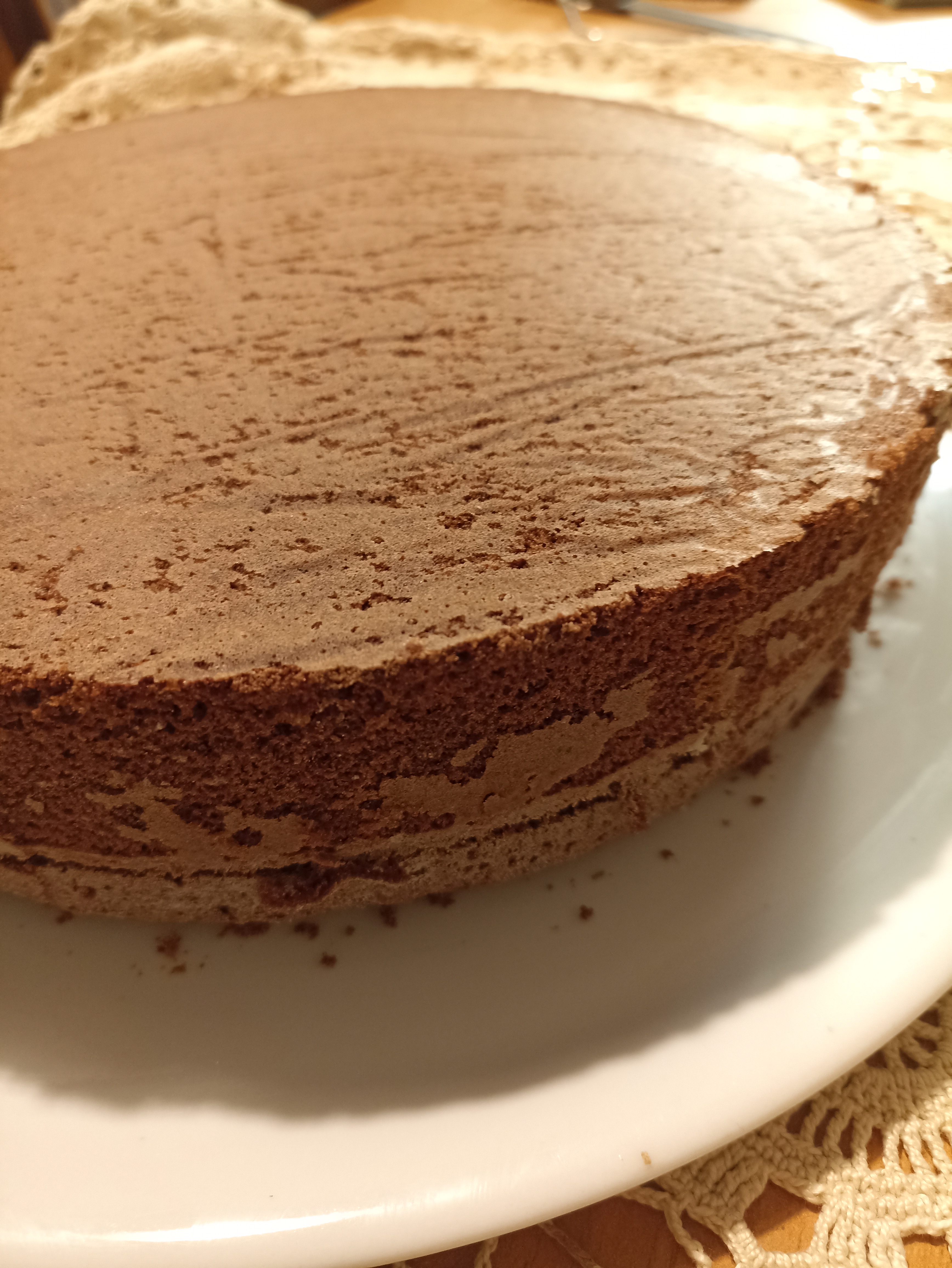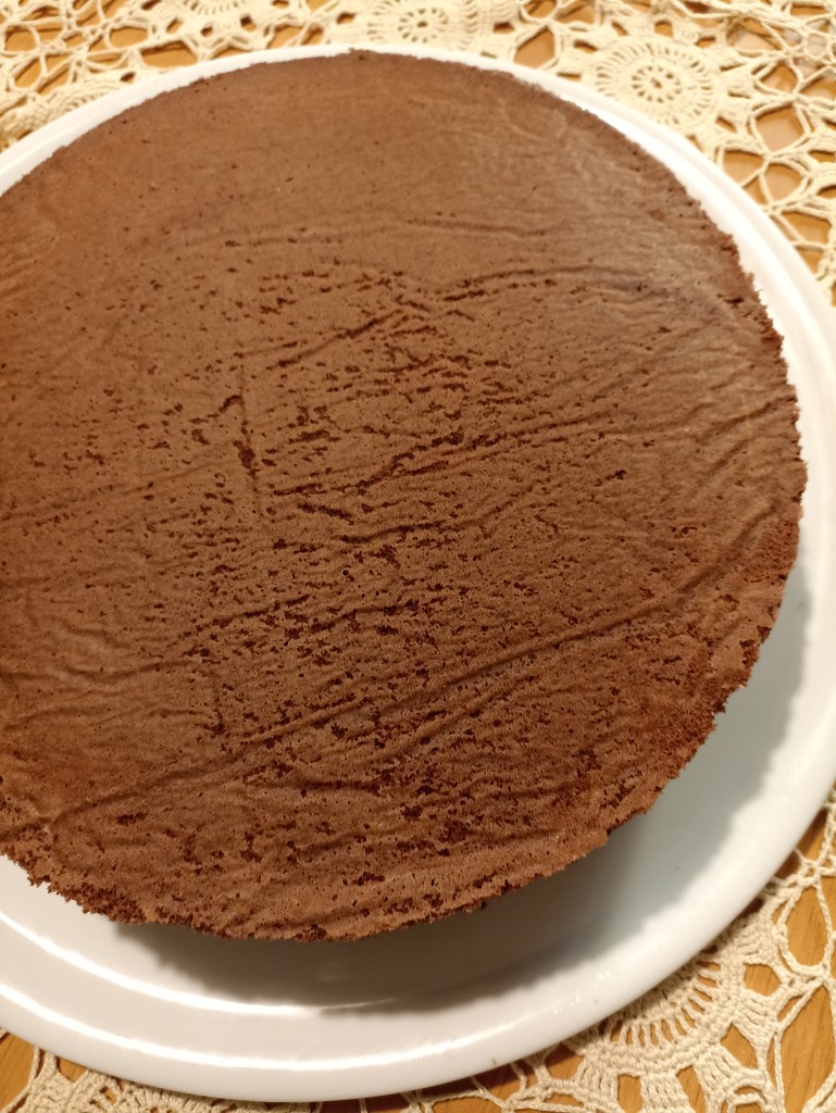 Sfornate, lasciate raffreddare e trasferite il pan di spagna al cacao su un piatto da portata.