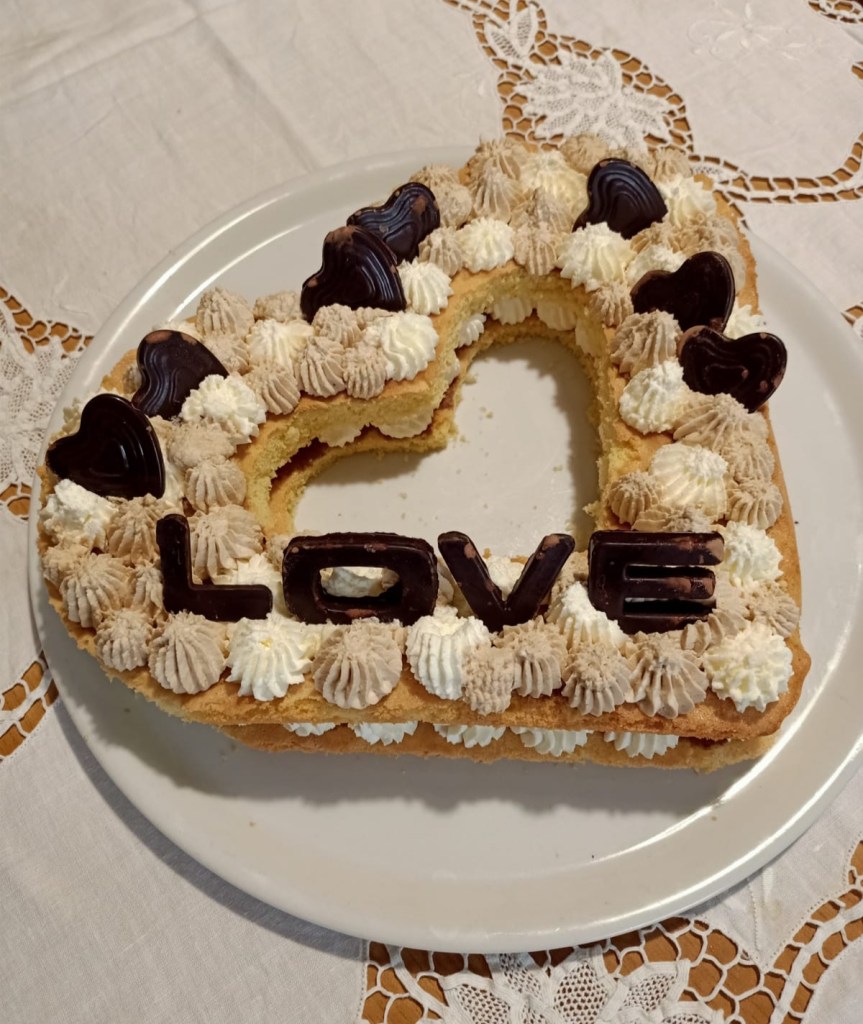 Cream Tart è un dolce scenografico che si può realizzare con la forma che più vi piace, cuore, fiore, numero… è l’ideale per un compleanno o una festa. Oggi, proprio per il compleanno di Giorgio, mio marito, ho preparato questa Cream Tart a forma di cuore. L’ho aromatizzata con del caffè e farcita con una crema al mascarpone e panna. Infine ho decorato la torta con dei cioccolatini homemade… è piaciuta a tutta la famiglia ♥️