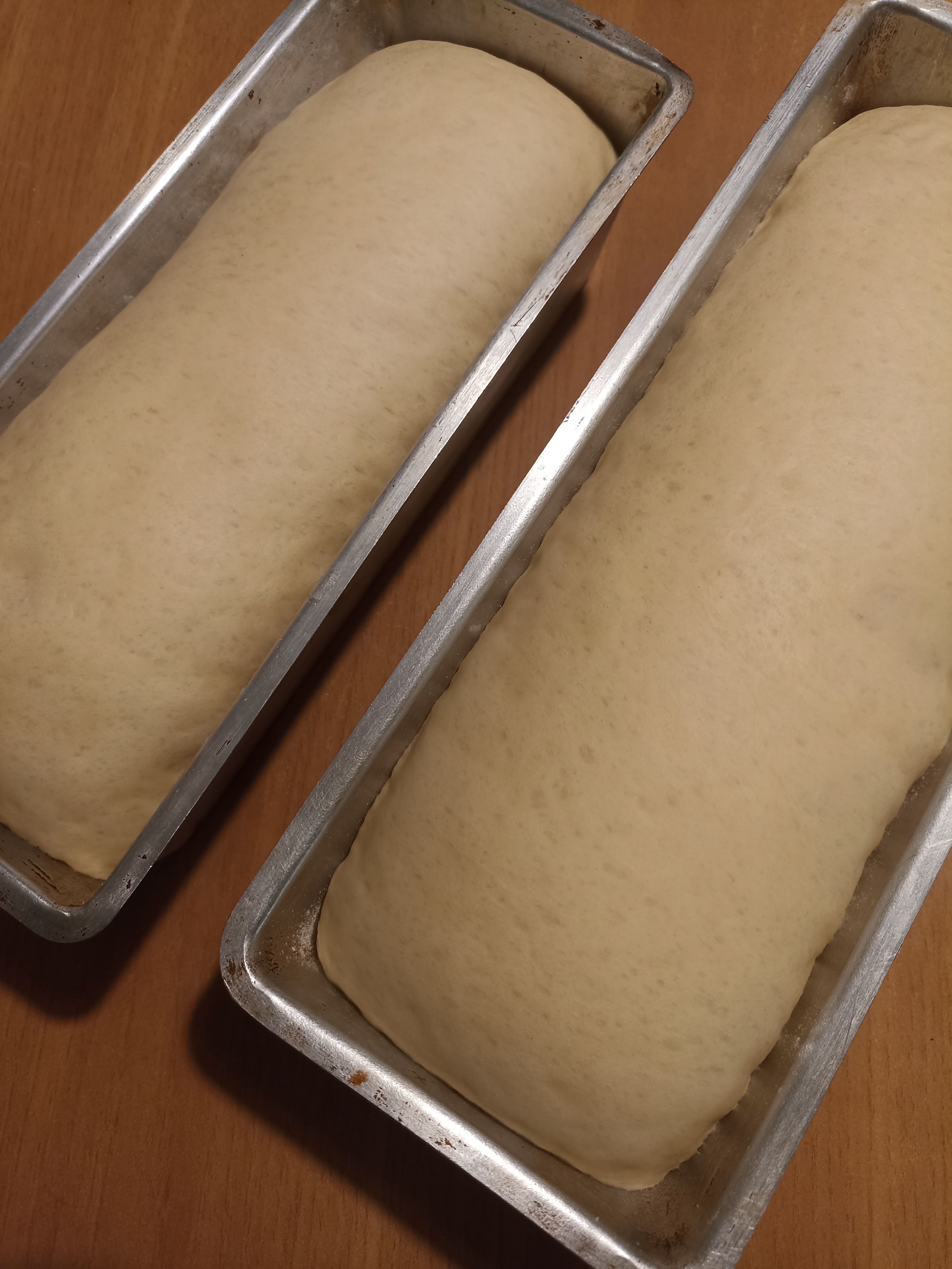 Quando l’impasto è ben lievitato dividetelo, formate due filoncini e poneteli in due stampi da plum-cake oleati e infarinati(io ho utilizzato uno stampo da plum-cake da 30 cm e uno da 26 cm. Se avete solo uno stampo con l’impasto rimanente potete realizzare delle brioches).