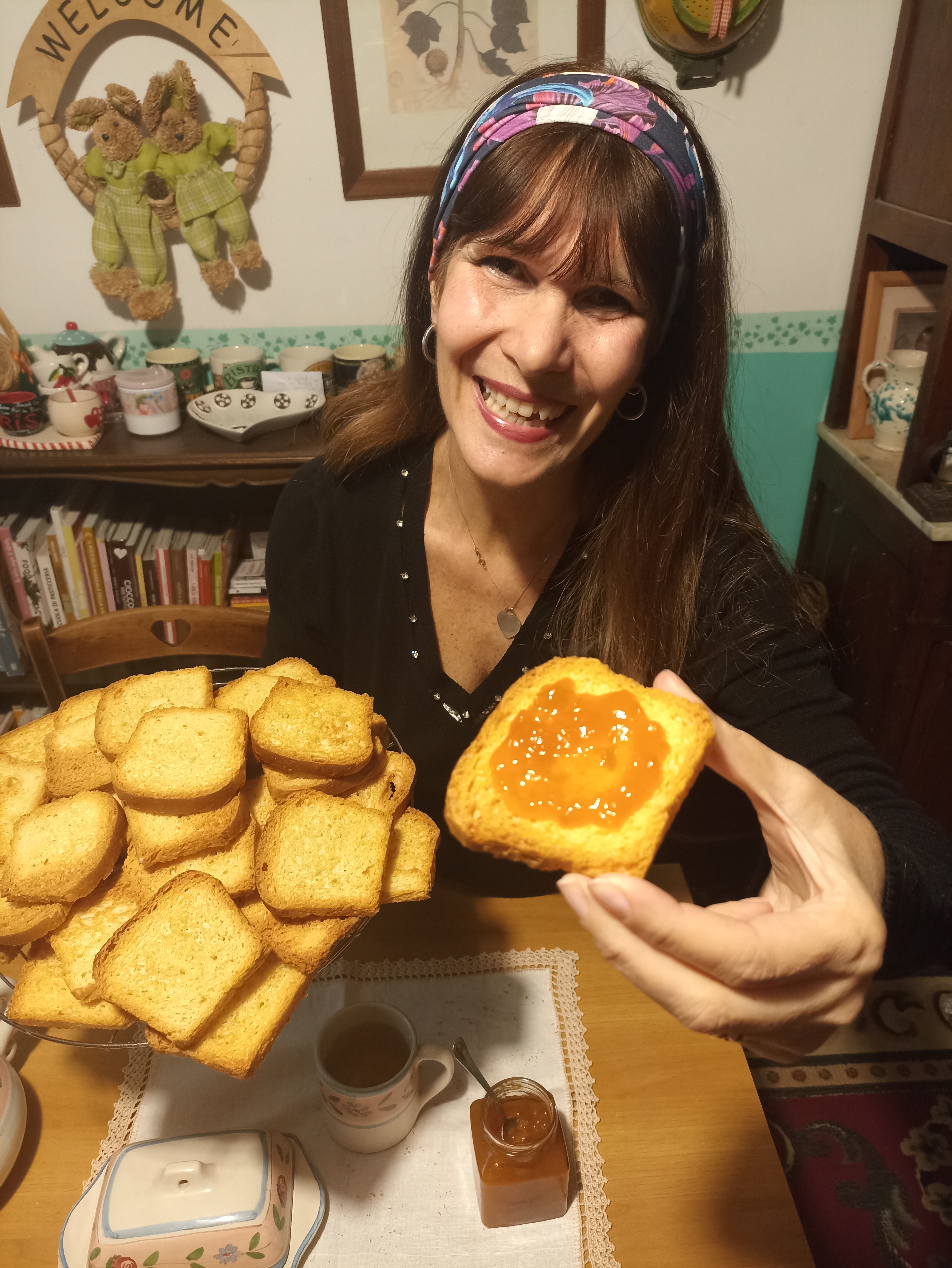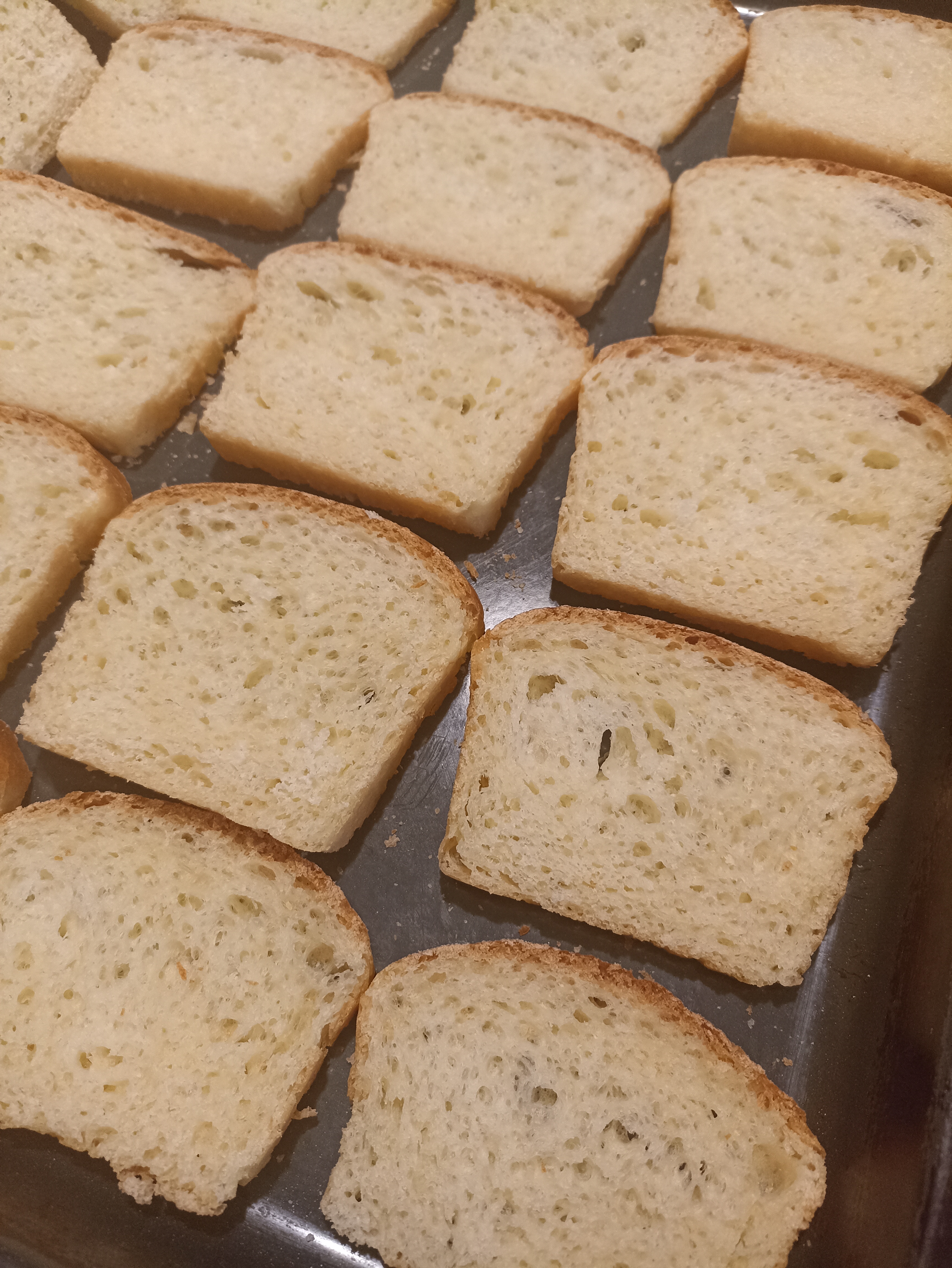 L’indomani tagliate le fette biscottate a 1 cm di spessore (o poco meno), e fatele dorare in forno a 150° per 7-8 minuti per lato. Non fatele dorare troppo.