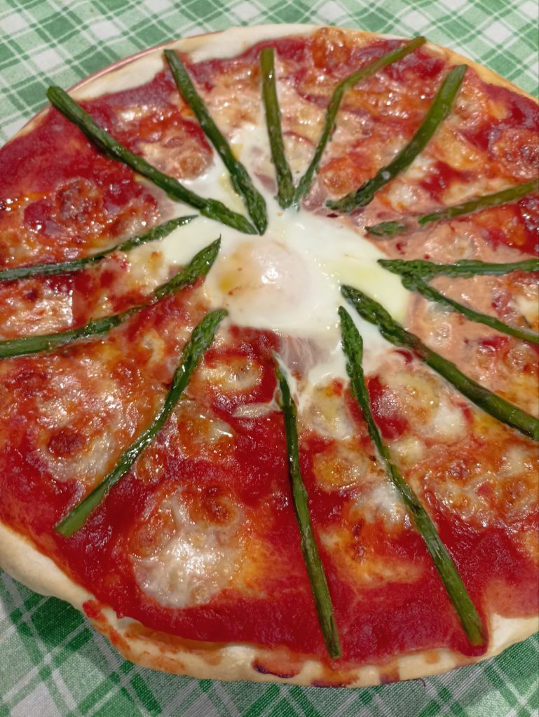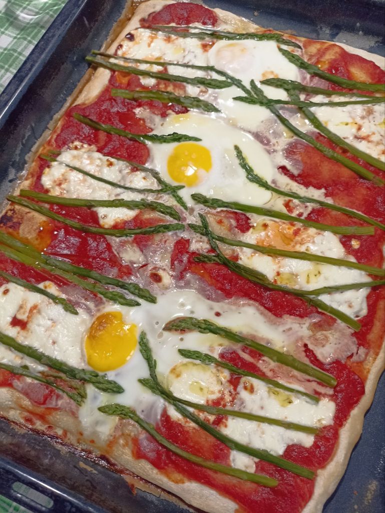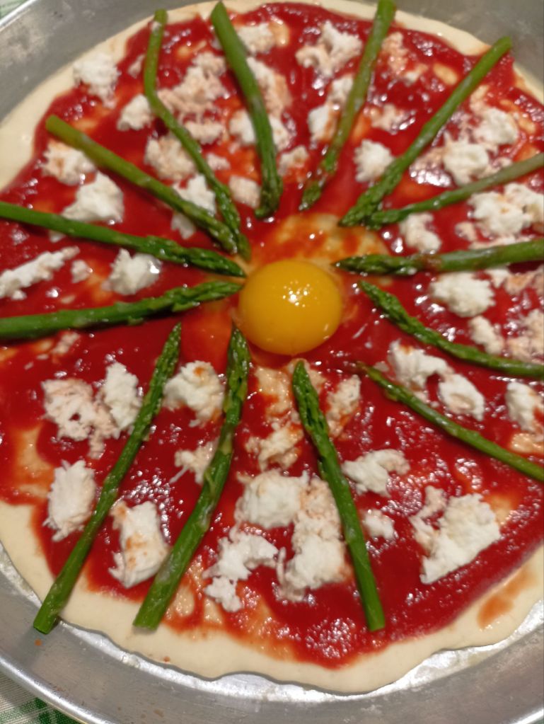 Oggi vi propongo la pizza Super, la preferita di mio marito. È una pizza con pomodoro, mozzarella, asparagi e uova. Quando andiamo in una pizzeria vicino a casa nostra (in questa stagione) la prende sempre. L’ho chiamata Super perché è la Super ruota del carro (al centro l’uovo e gli asparagi a raggiera). La stagione è giusta… quindi l’ho voluta fare anche io…. il risultato? Strepitoso…❤️