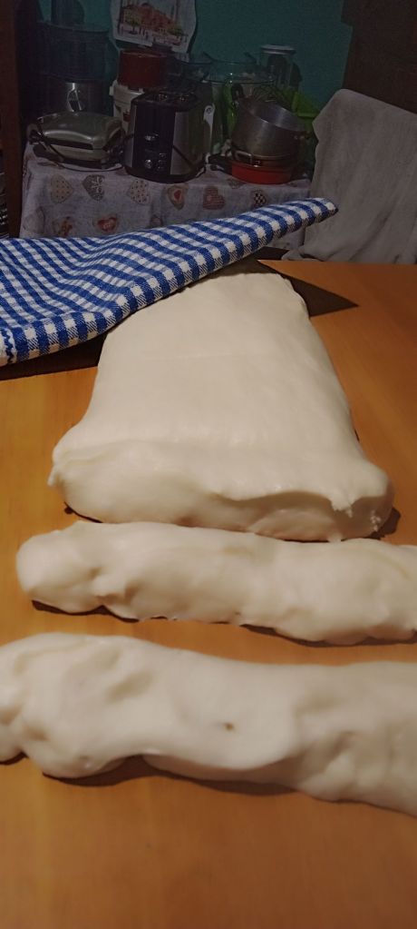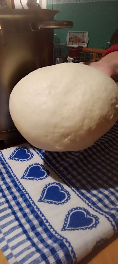 Mettete la farina in una ciotola, aggiungete il latte con il lievito sciolto e iniziate a impastare incorporando tutta la farina.