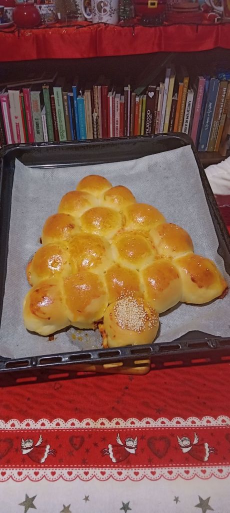 Grazie per l’idea sia la ricetta che lo “stampo” di carta stagnola per l’Albero. Perfetto.Grazie grazie. Buoni preparativi in cucina cara.👩🍳🤗🥰👋👋