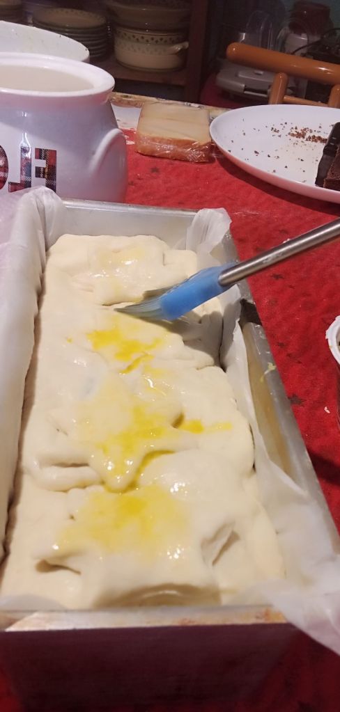 Spennellate la superficie con l’uovo sbattuto, cuocete in forno ventilato a 180 gradi per 40 minuti circa.