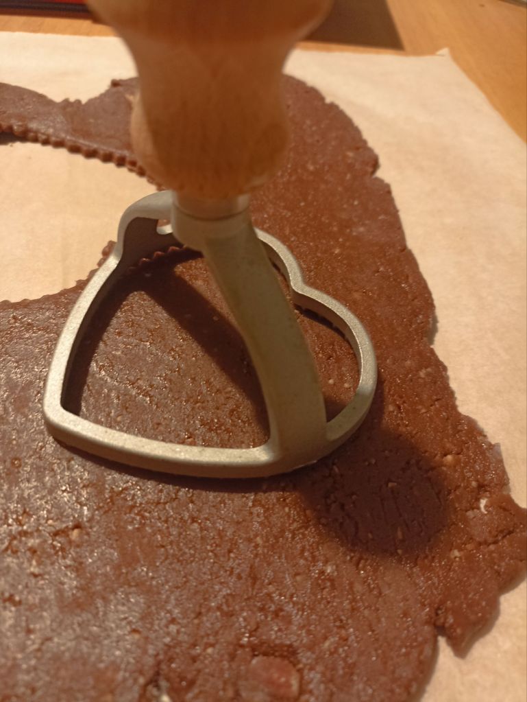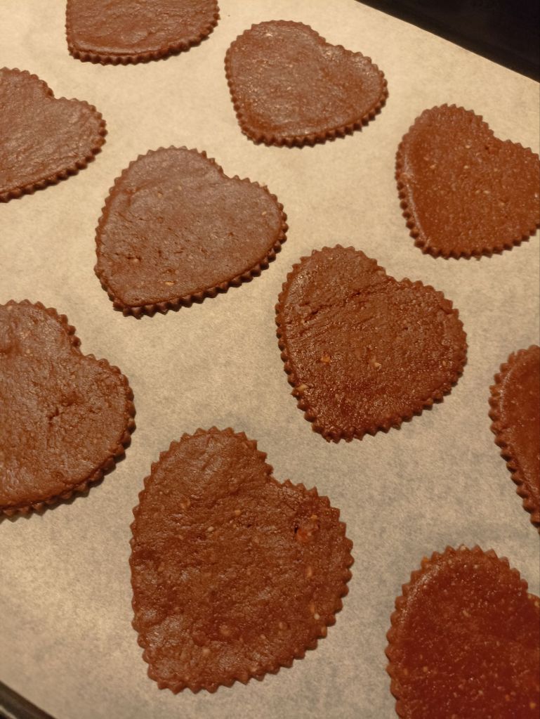 Con uno stampino a forma di cuore ricavate i biscotti. (Io ho utilizzato 2 misure, un cuore grande e uno piccolo).