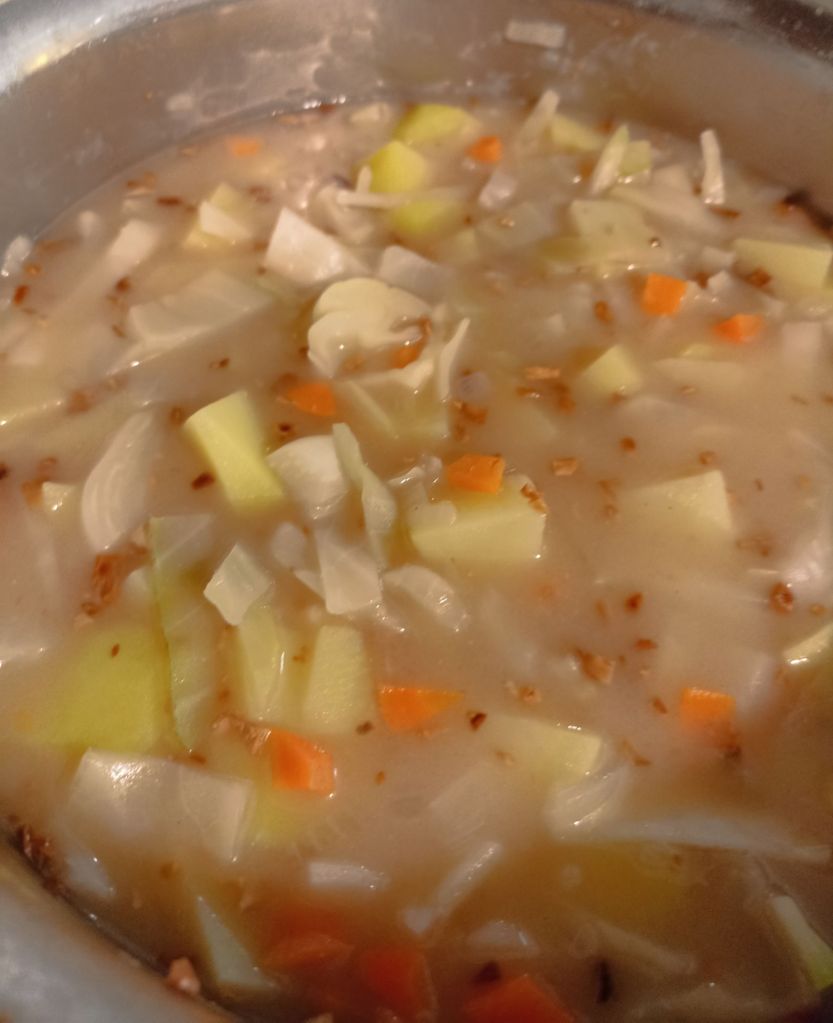 Appena l’acqua bolle unite le patate, la verza, la carota tagliata a piccoli pezzettini e i funghi secchi tritati (tenete da parte l’acqua dei funghi).