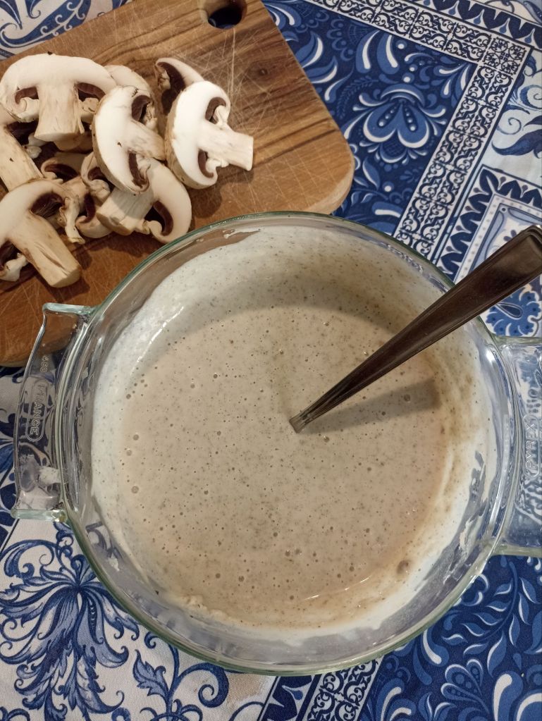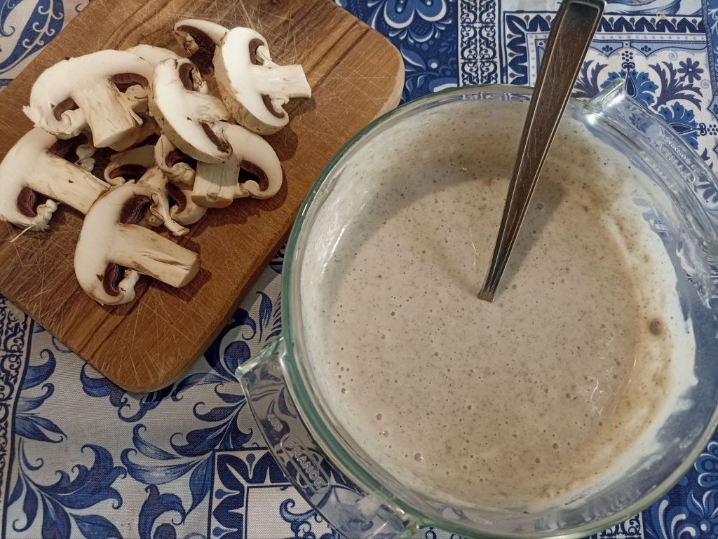 In una ciotola, mettete la farina e aggiungete il brodo poco alla volta, mescolando bene per evitare grumi. Versate il composto nella casseruola con i funghi, salate, pepate e mescolate per 3-4 minuti, finché la salsa non si sarà addensata. Frullate il tutto con un frullatore a immersione e trasferite la salsa in una salsiera.
