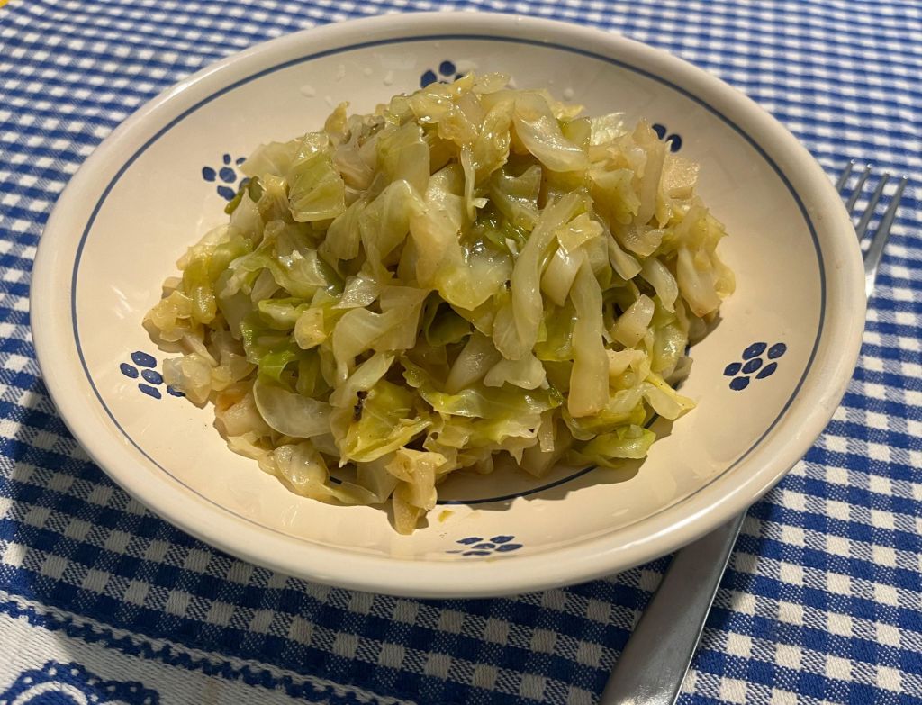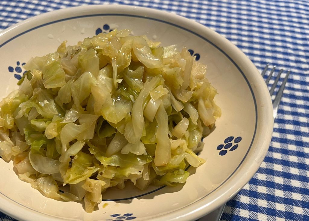 Mescolate, coprite, abbassate la fiamma e fate stufare fino a che la verza sarà cotta.