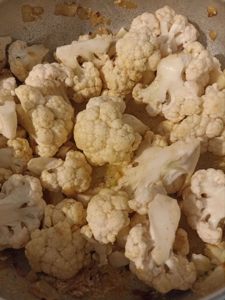 Unite lo yogurt, un giro d’olio, mescolate e fate andare ancora 2-3 minuti. Il cavolfiore deve risultare cotto ma ancora ben sodo.