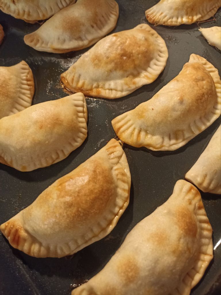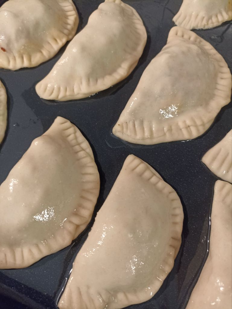 Spennellate le empanadas con l’albume sbattuto e fate cuocere in forno ventilato a 180° per 20-25 minuti fino a doratura.