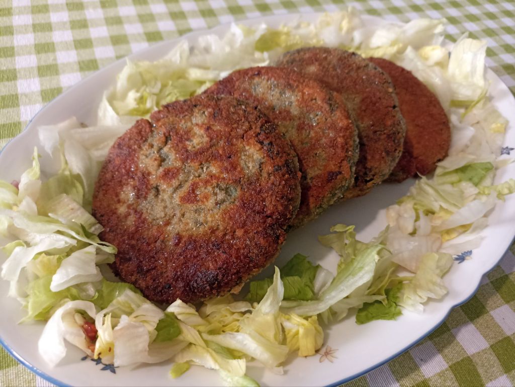 Passate l’hamburger prima nella farina, poi nell’uovo sbattuto con un pizzico di sale e infine nel pangrattato. Compattate bene con le mani.
