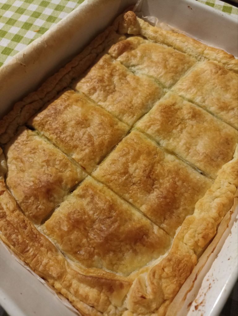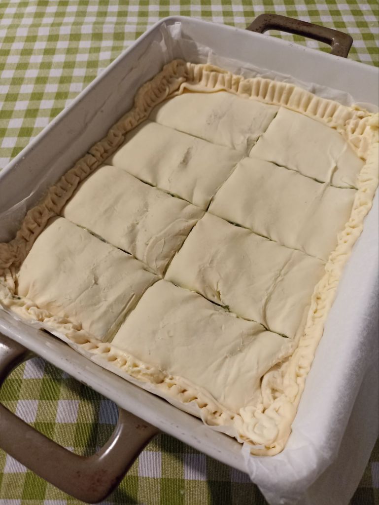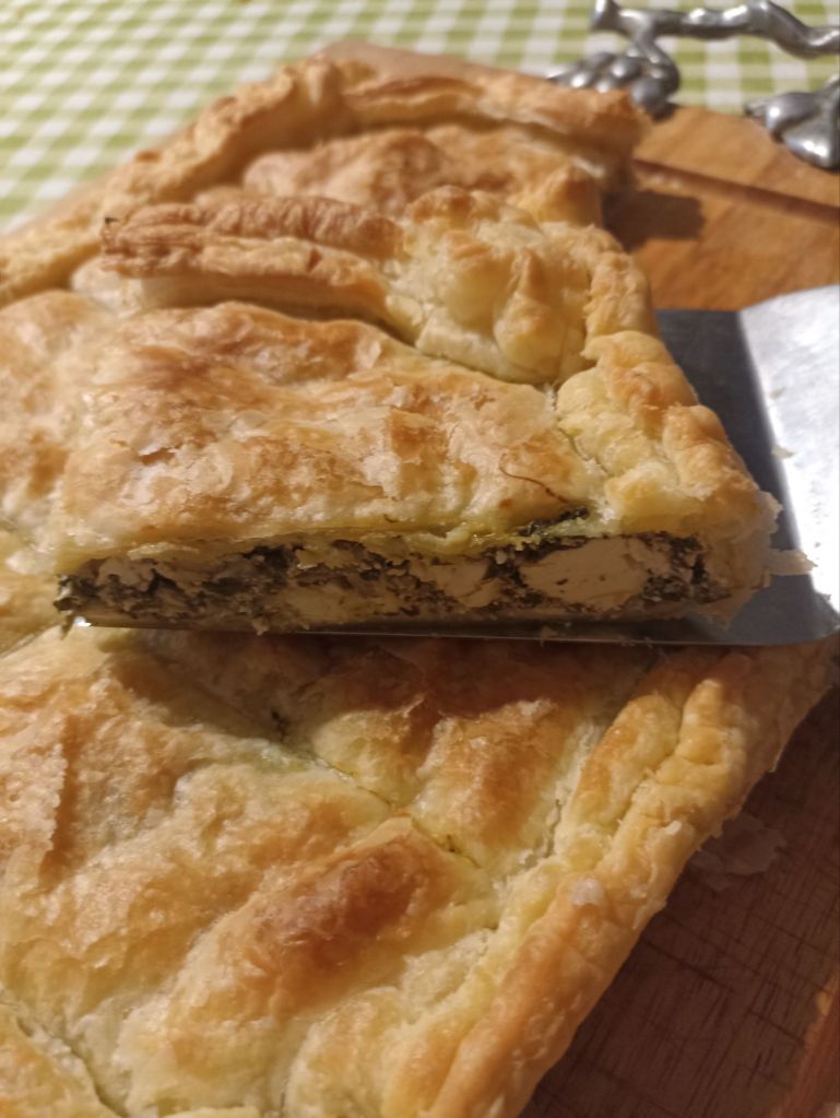 Sfornate la Spanakopita quando è ben dorata in superficie e lasciate intiepidire.
