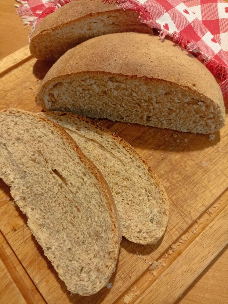 La mia ricetta, pensata per esaltare al meglio gli aromi, unisce la semplicità di un impasto genuino a un mix di erbe aromatiche come rosmarino, timo, origano e maggiorana. Il risultato è un pane dalla crosta dorata e croccante e dalla mollica soffice e profumata, che si sposa alla perfezione con formaggi, salumi, e olio d’oliva.