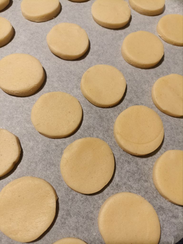 Disponete gli shortbread su una teglia rivestita con carta da forno.