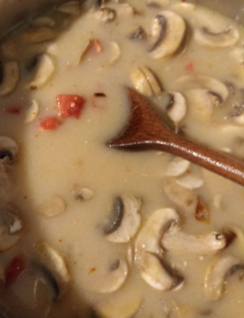 Mescolate di tanto in tanto. Aggiungete il brodo caldo, i pomodori, lo yogurt, l’alloro, una spolverata di pepe, (aggiungete anche gli spinaci se utilizzate quelli surgelati) salate e coprite.