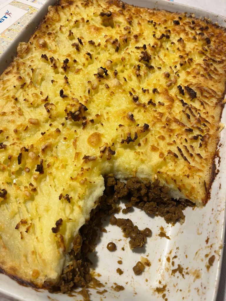 Questa Vegetarian Cottage Pie è il “comfort food” per eccellenza: una base ricca e saporita di lenticchie e funghi champignon cotta lentamente, sormontata da un soffice strato di purè di patate dorato al forno. È la versione vegetale di un classico britannico, perfetta per scaldare le serate più uggiose