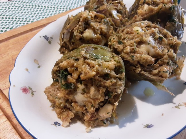 I carciofi ripieni come una volta sono fatti con un ripieno sempliciccimo, infatti sono senza carne. Li preparava mia nonna con ciò che aveva a disposizione: pecorino grattugiato e a scaglie,  pane grattugiato,  un uovo, un trito d'aglio e prezzemolo, pochi ingredienti ma appetitosi e saporiti.  È proprio vero che le ricette semplici sono sempre … Continua a leggere Carciofi ripieni come una volta.